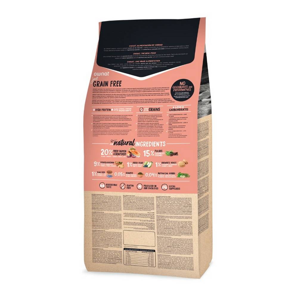 OWNAT JUST GRAIN FREE. ADULT SALMON&SEAFOOD – это сбалансированное питание для взрослых собак всех пород, произведённое в Испании.