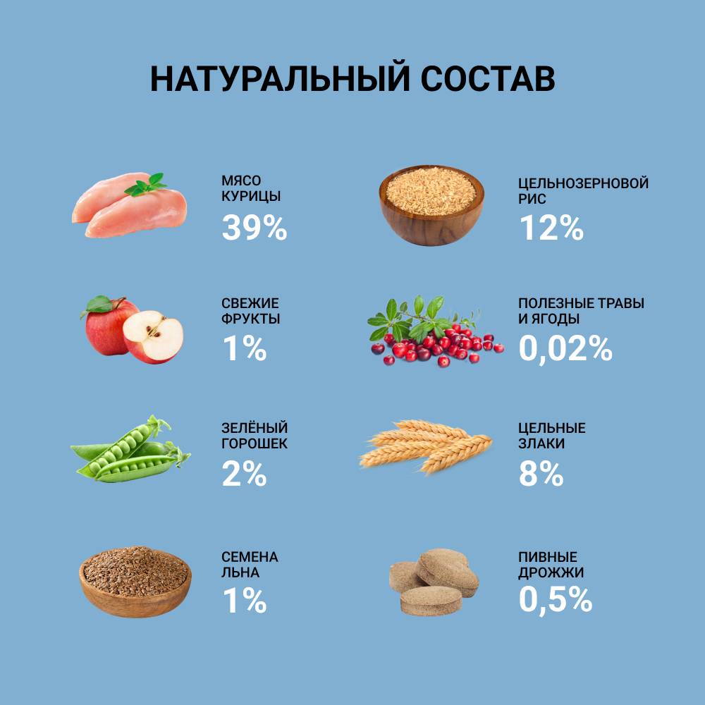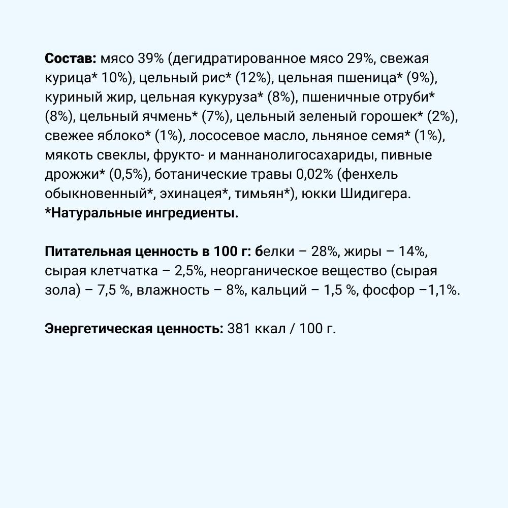 Хороший состав, удобный размер корма, нет аллергии, хорошо набирает вес