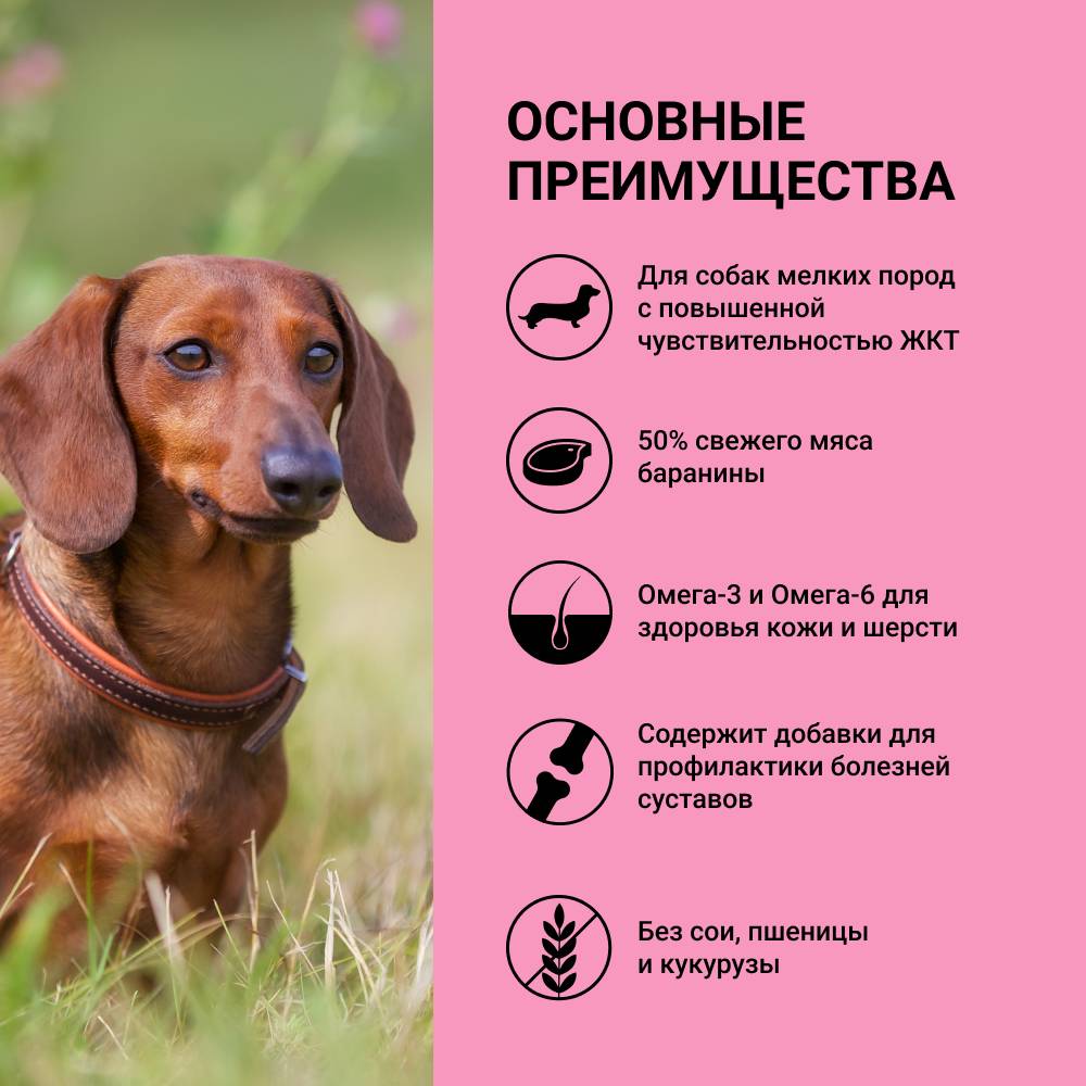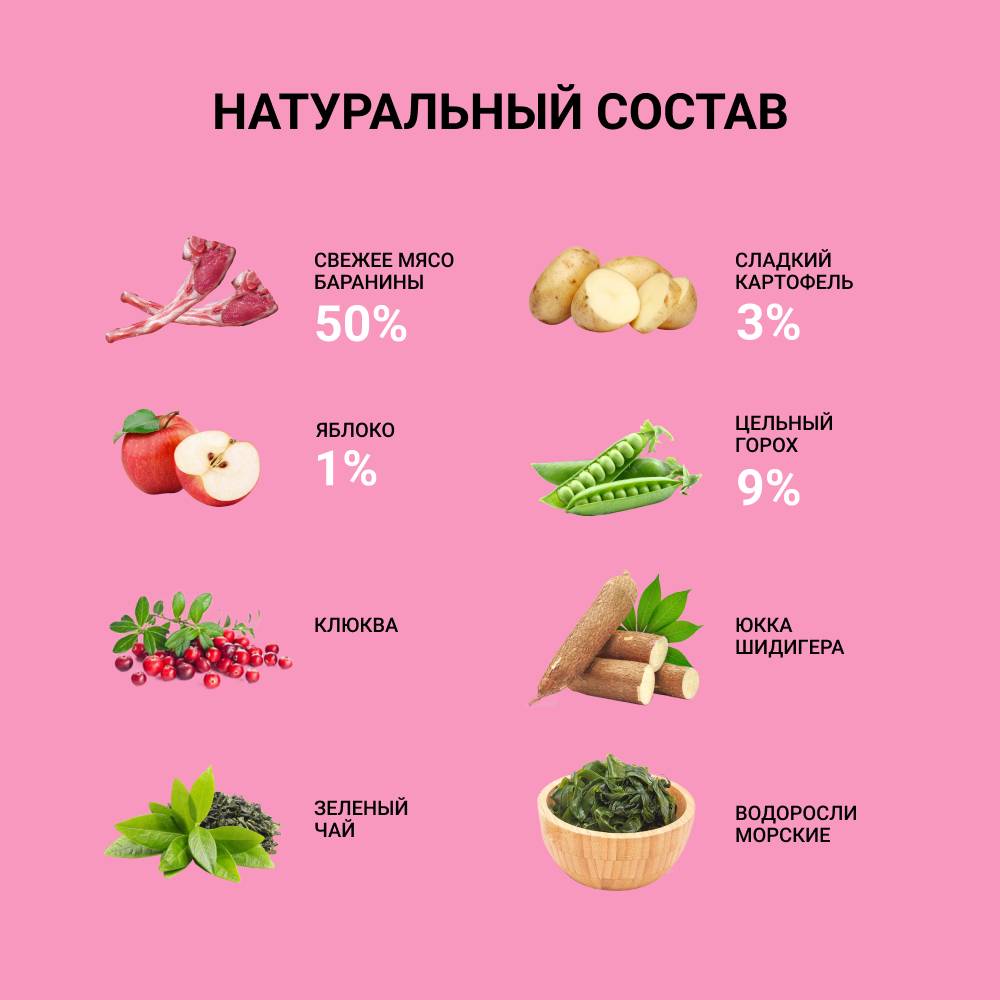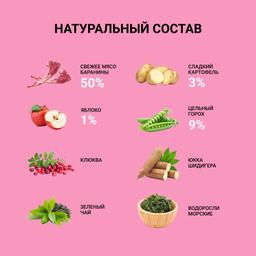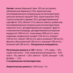 - Изготовлен из натуральных ингредиентов и свежего мяса – до 50% свежей баранины.