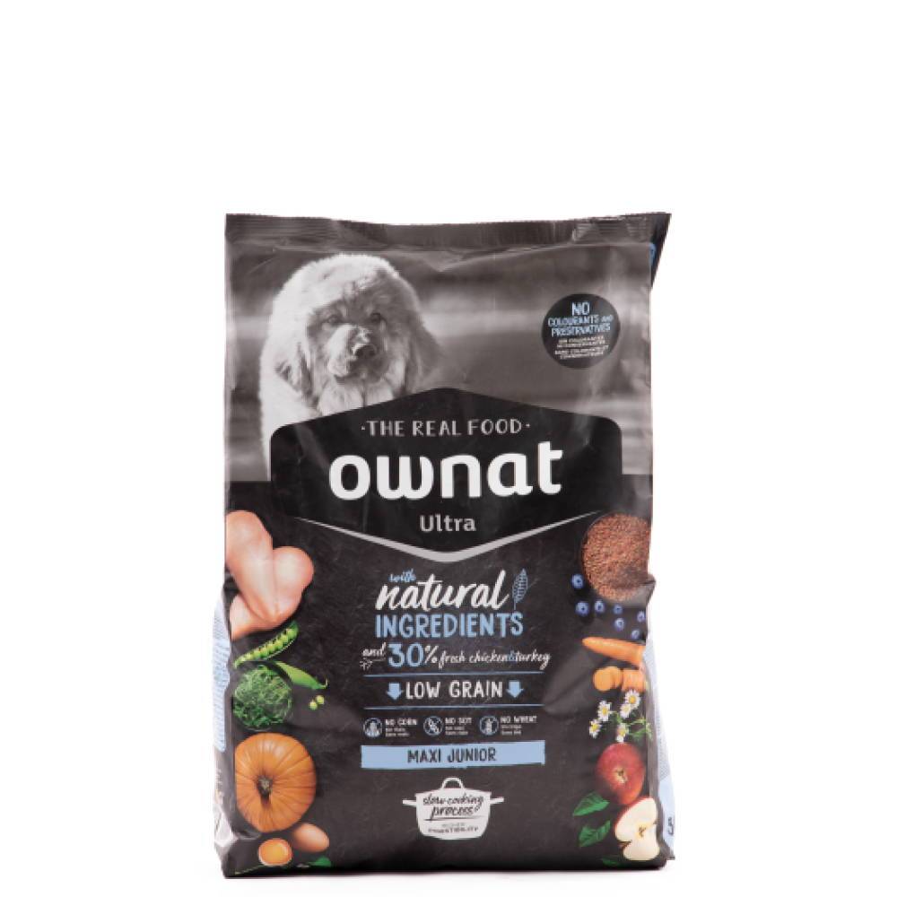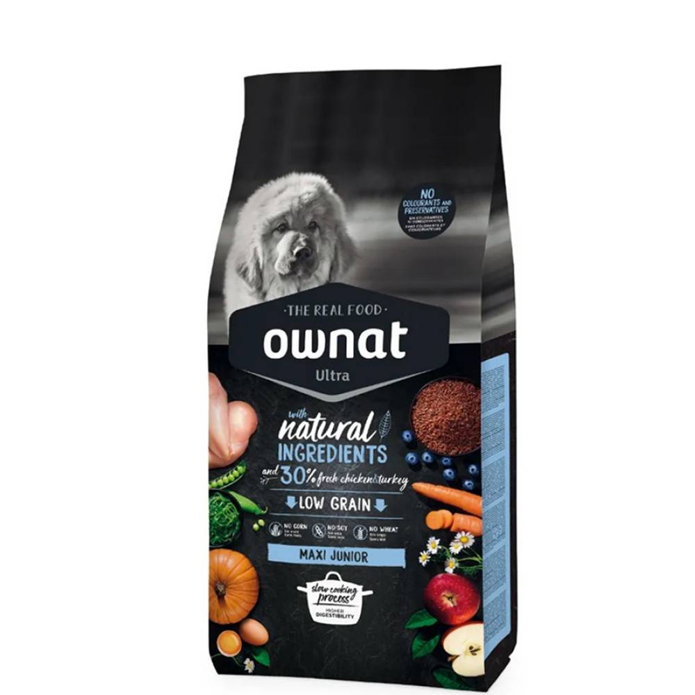 OWNAT ULTRA. MAXI JUNIOR – это сбалансированное питание для щенков крупных пород, произведённое в Испании. В основе корма лежит максимальное количество натуральных ингредиентов: свежее мясо, цельное зерно, свежие овощи и фрукты, а также водоросли, что позволяет донести до питомца пользу продуктов в том виде, в каком задумала природа.