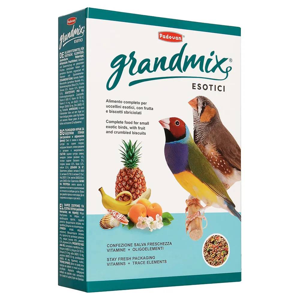 Padovan Полнорационный корм Grandmix Esotici для взрослых экзотических птиц (амадины, австралийские, астрильдовые, африканские). Высококачественная смесь зерен и семян с сушеными фруктами, раскрошенным печеньем и измельченными ракушками с витаминными и минеральными добавками.