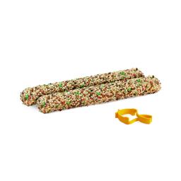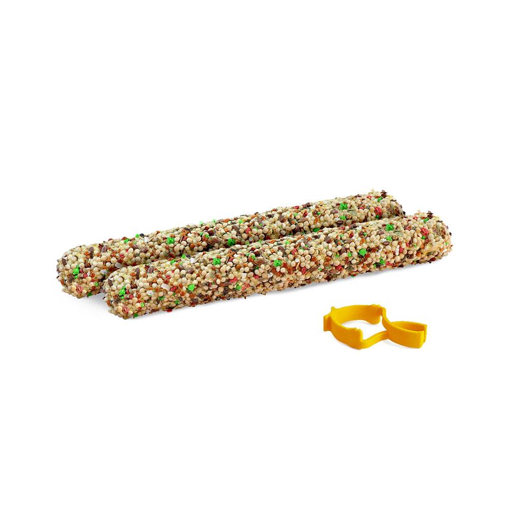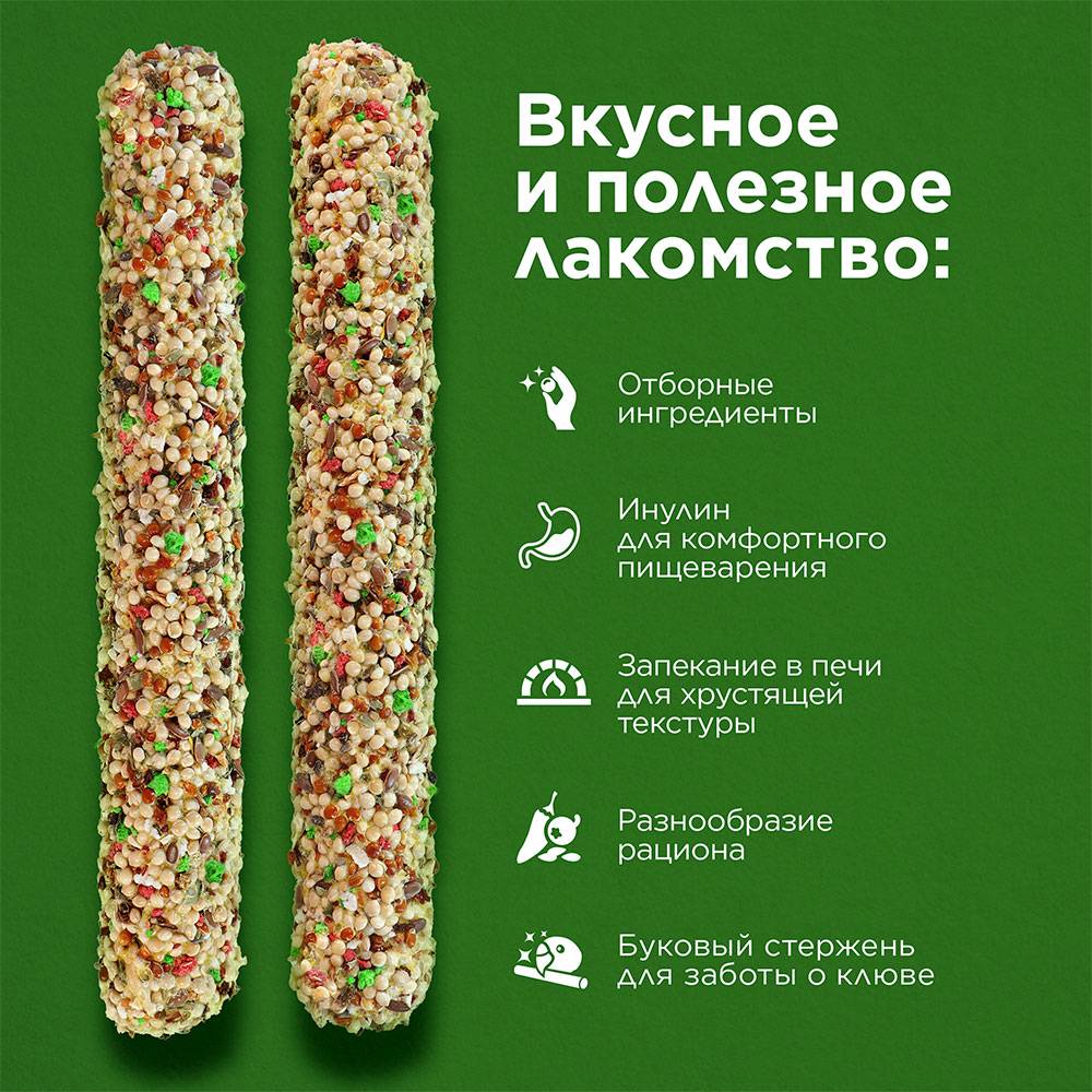 Палочки с садовыми овощами – вкусное и полезное лакомство для разнообразия рациона волнистых попугайчиков и экзотов. Богатый состав лакомства включает натуральные сушеные овощи: пастернак, цукини, шпинат, сельдерей, тыкву, морковь и сладкий красный перец. Палочки выпекаются в печи и приобретают яркий вкус и хрустящую текстуру, которая так нравится птицам. Основа палочки – прочный буковый стержень, который служит отличным инструментом для стачивания клюва.