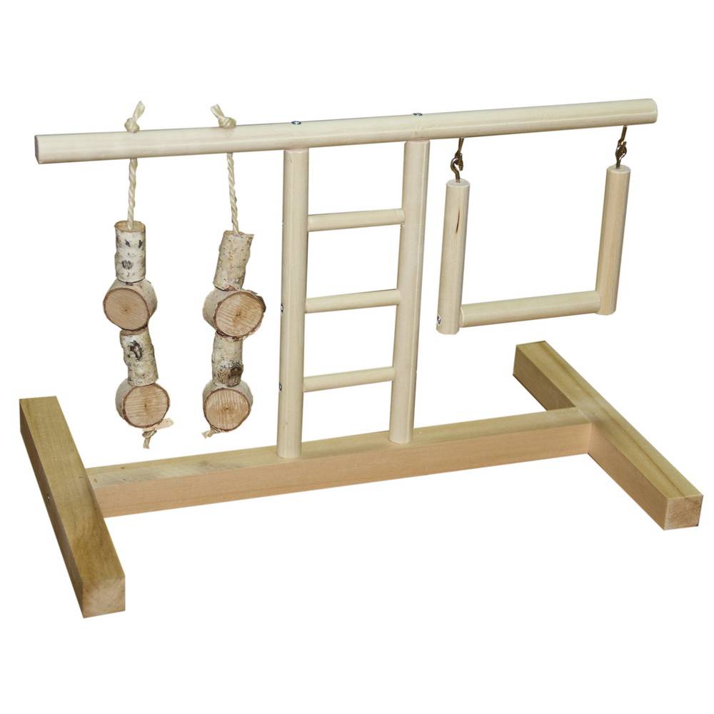- Игровая площадка для попугаев из дерева.