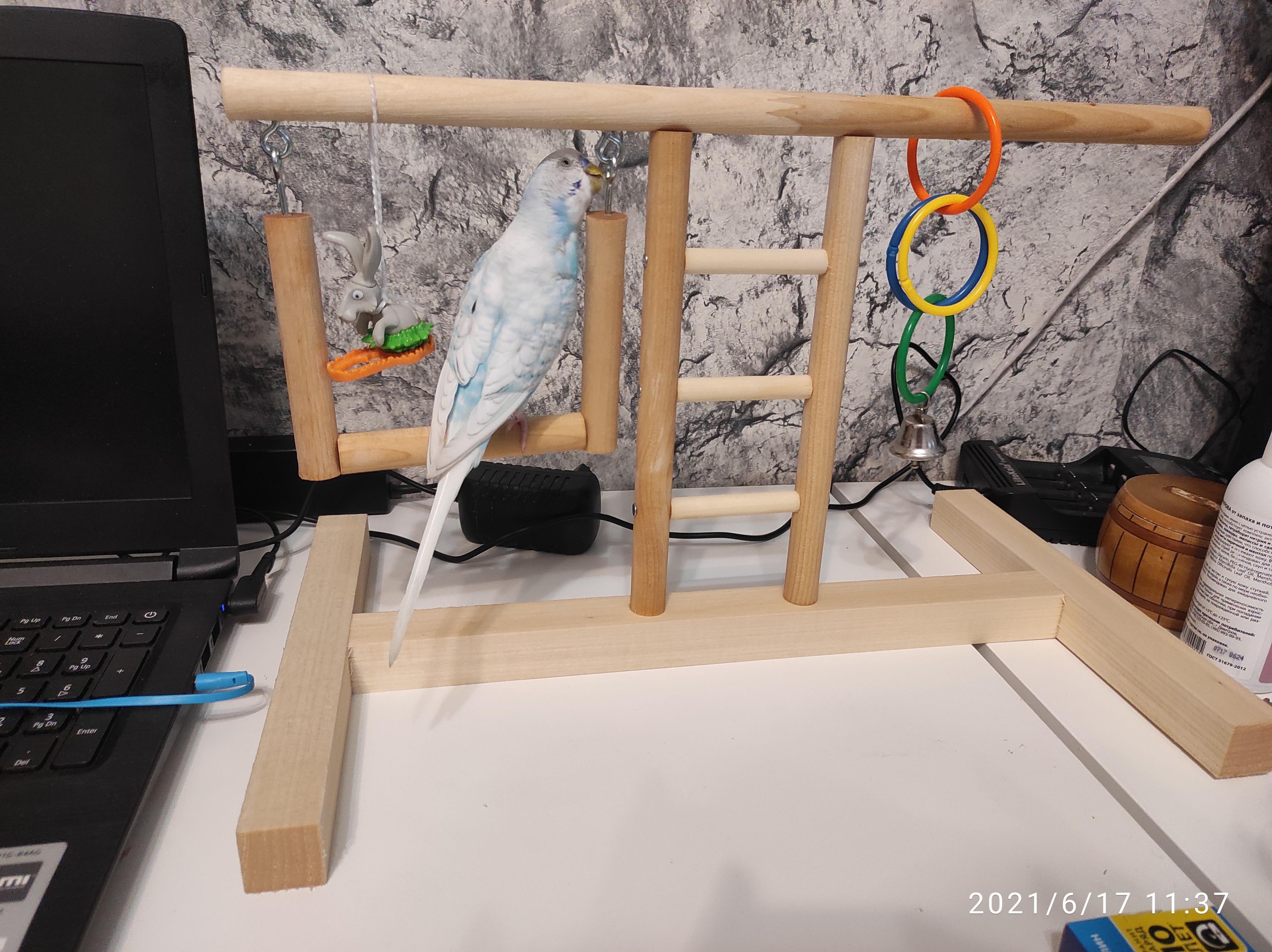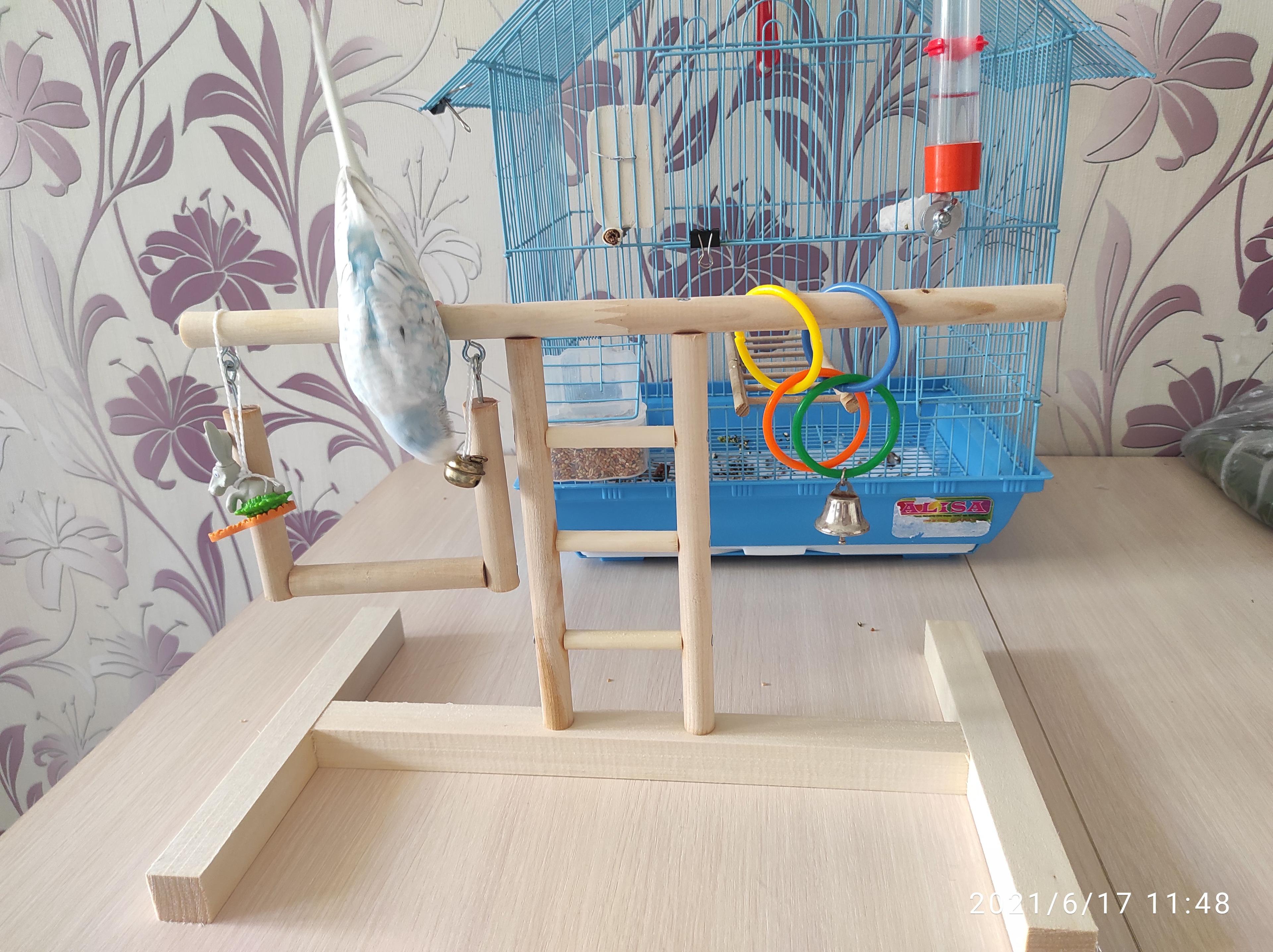 - Это место, где птица сможет играть во время прогулок и поддерживать физическую форму прыгая, лазая, перелетая между жердочками.
