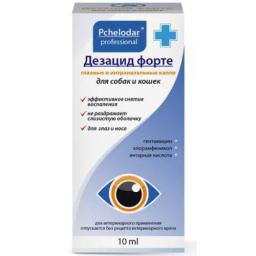Дезацид Форте капли глазные, 10мл. Дезацид форте оказывает выраженное противобактериальное, противовоспалительное и регенерирующее действие на ткани глаза и носа животного. Международное непатентованное название: гентамицин, хлорамфеникол, янтарная кислота.