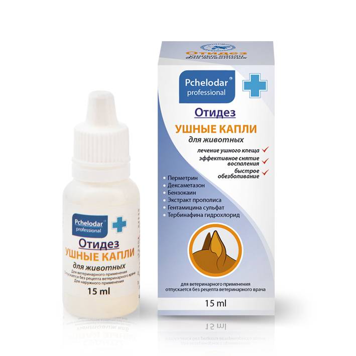 Высокоэффективные ушные капли Отидез, предназначенные для лечения острых и хронических отитов, поверхностных дерматитов наружного уха и слухового прохода бактериальной, грибковой, аллергической и паразитарной этиологии у животных. Действующие вещества препарата оказывают выраженное антибактериальное, противогрибковое, акарицидное, противовоспалительное, противоаллергическое, ранозаживляющее и обезболивающее действие.