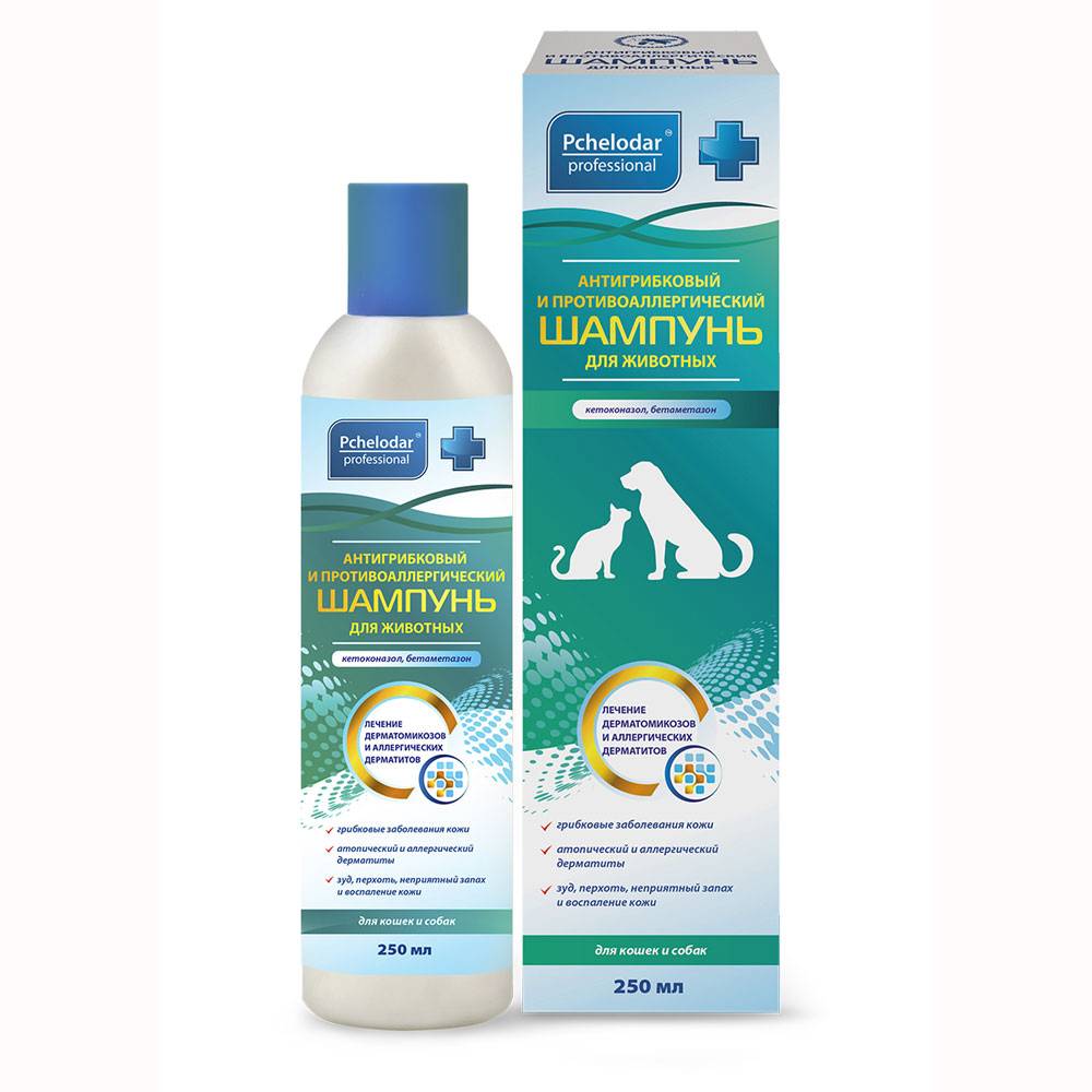 Антигрибковый и противоаллергический шампунь для животных применяют собакам и кошкам с лечебно-профилактической целью: