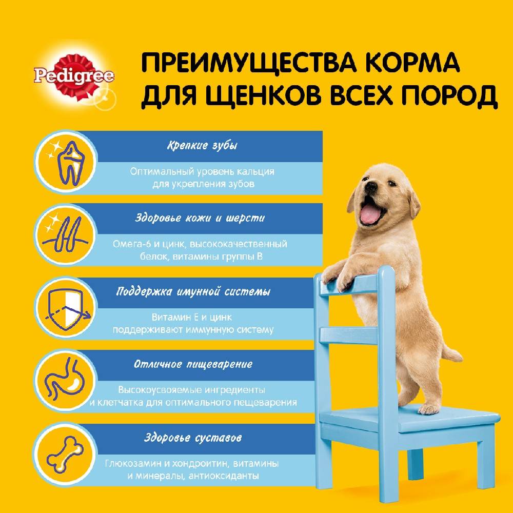 - Рацион PEDIGREE полнорационный корм с курицей создан с учетом потребностей щенков в период наиболее интенсивного роста.