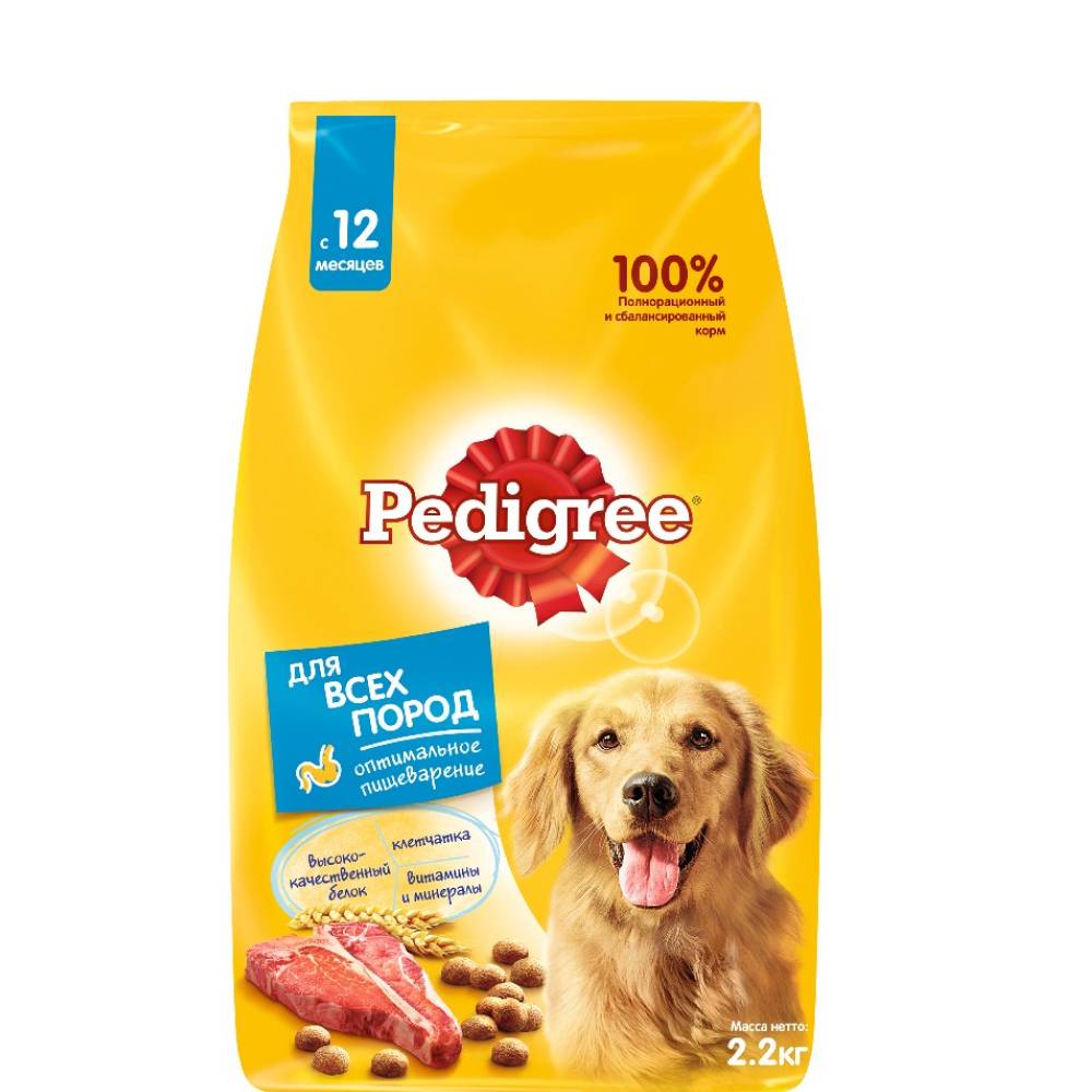 Сухой полнорационный корм PEDIGREE для взрослых собак всех пород, с говядиной.