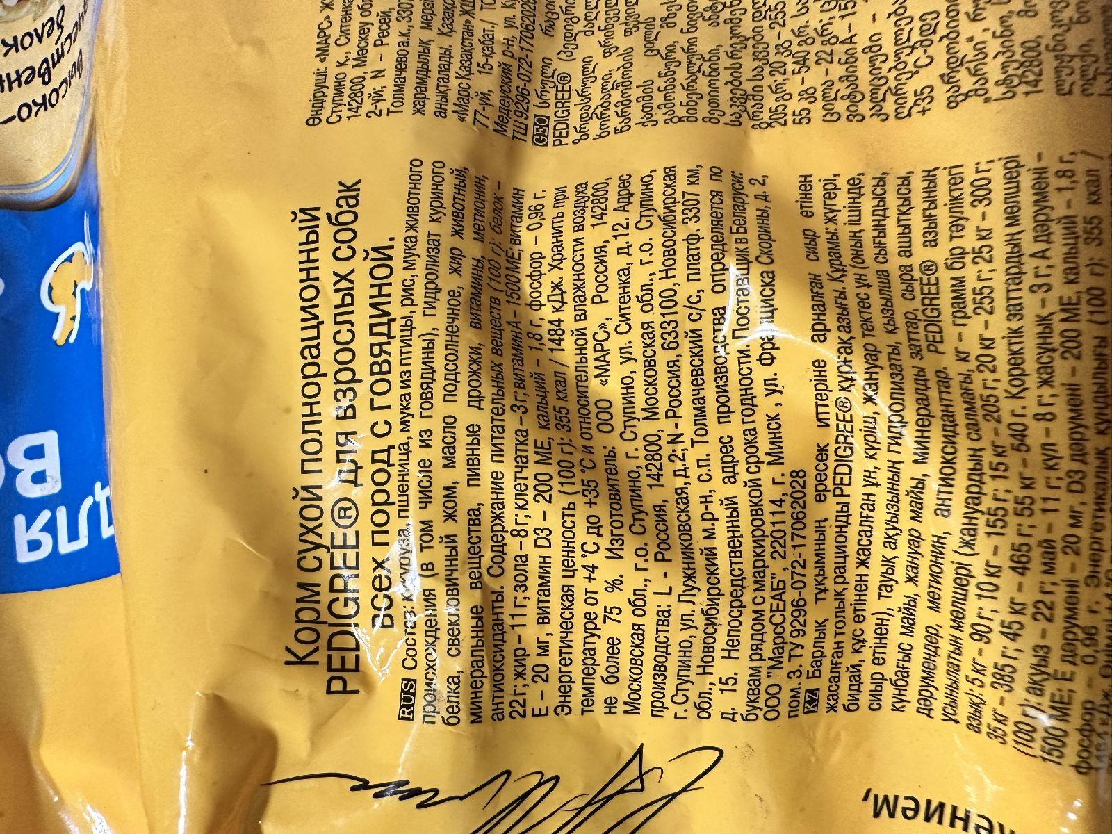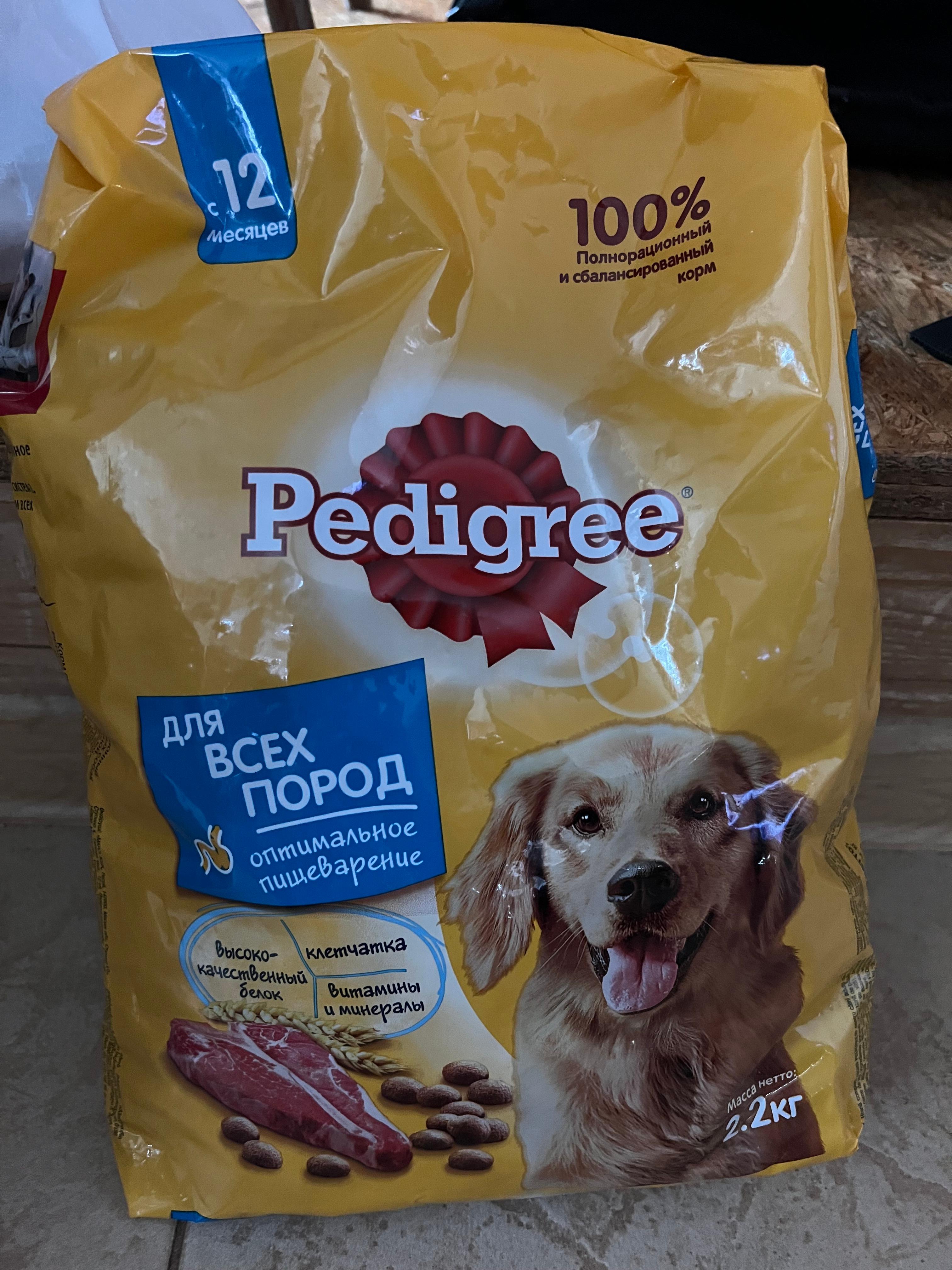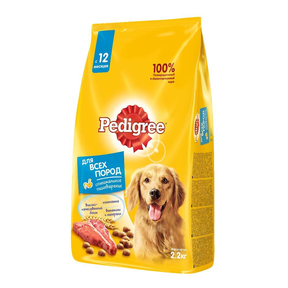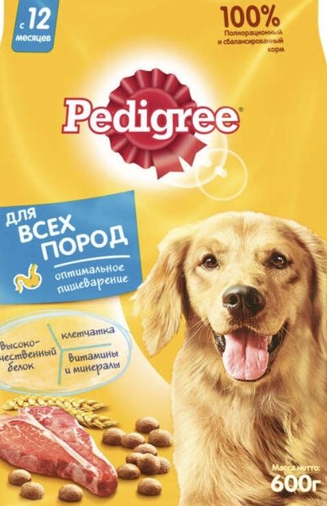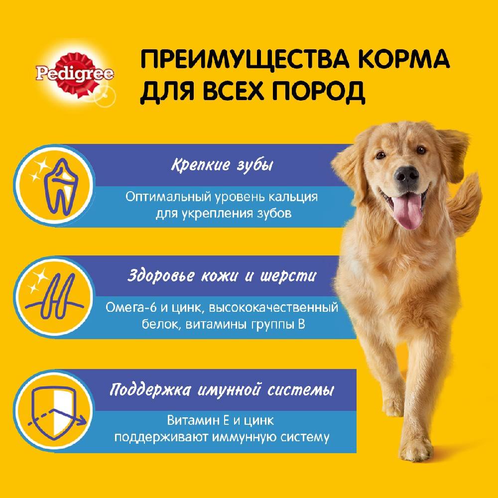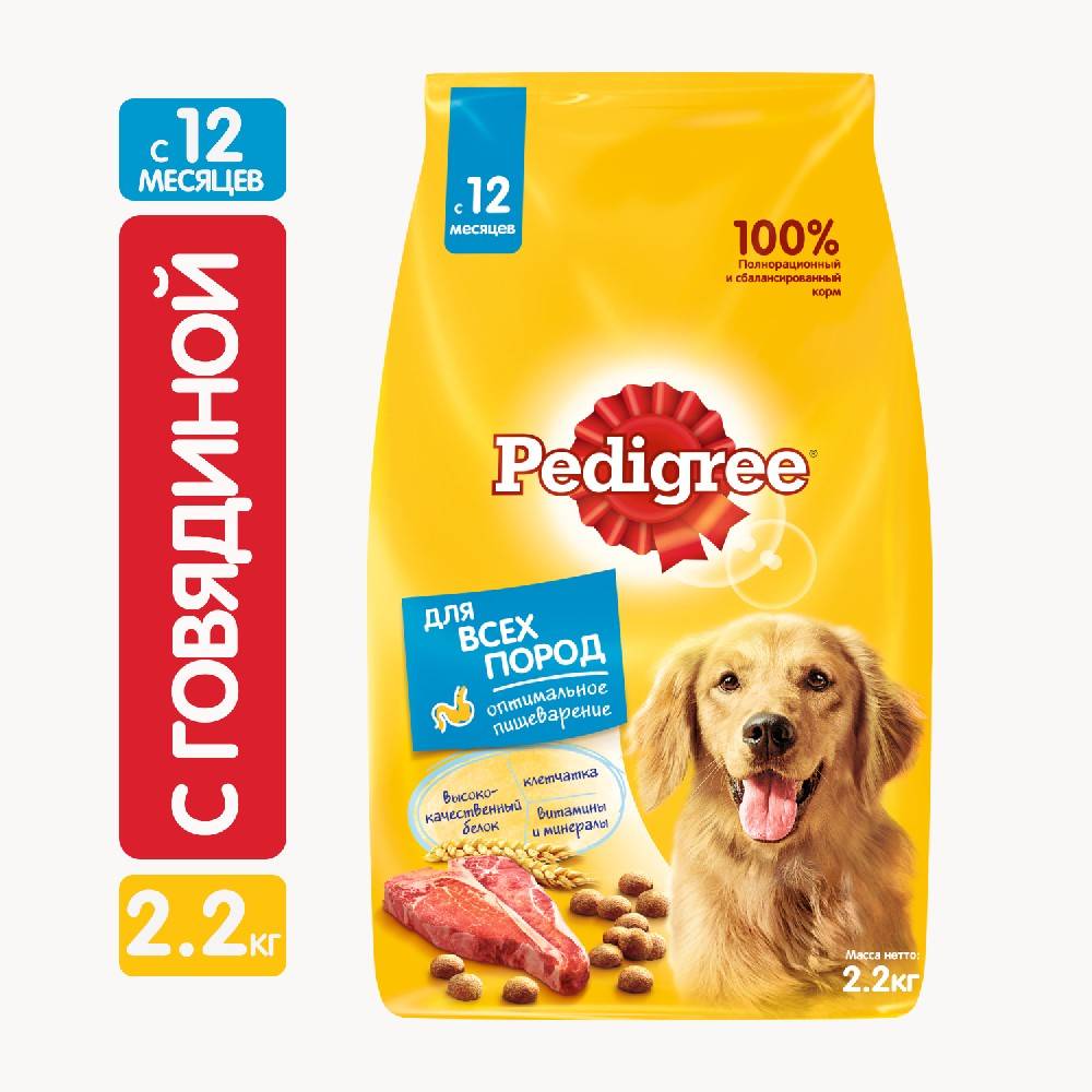 Сухой полнорационный корм PEDIGREE для взрослых собак всех пород, с говядиной.