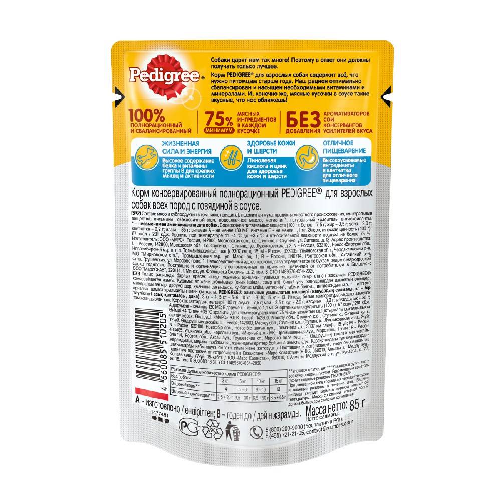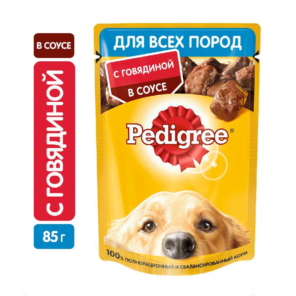 Pedigree Влажный корм (пауч) для взрослых собак всех пород, с говядиной в соусе, 85 гр.