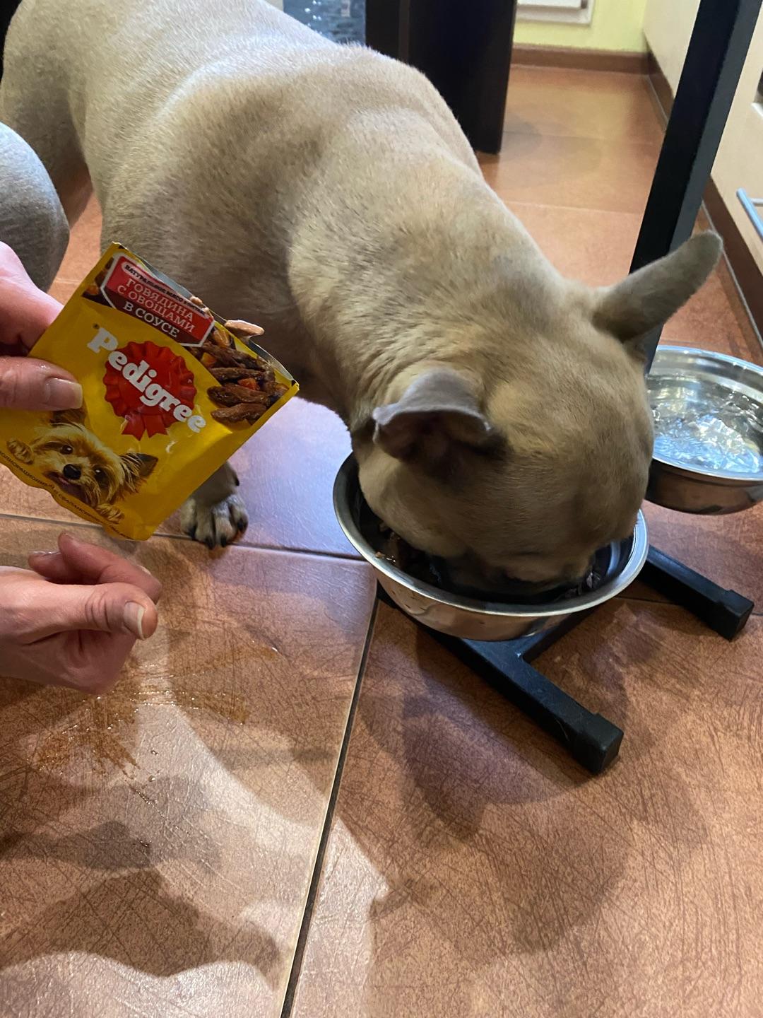 Подобрали собаку, не знали чем кормить. Ничего не ест, решили добавить в сухой корм пакетик влажного педигри. Вперемешку ест и просит добавки!! Проблема с кормом решена благодаря пакетикам этой марке))