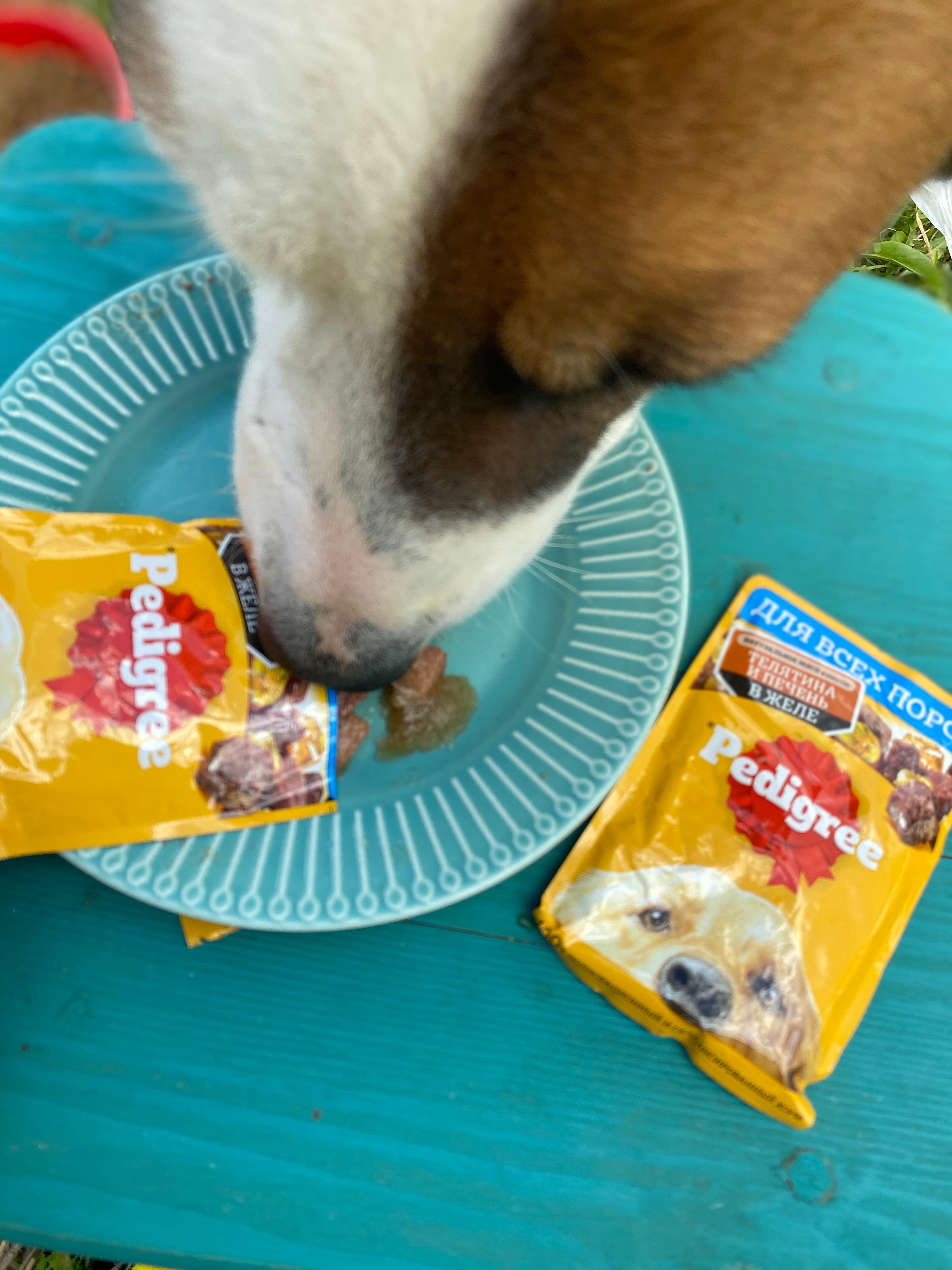 Хороший корм, мой пес есть с удовольствием. Правда, один пакетик 85г ему маловато будет, но как лакомство к сухому Педигри-отлично! Внутри кусочки в желе, желе и правда много, пахнет вкусно и стоит недорого.Регина Б.