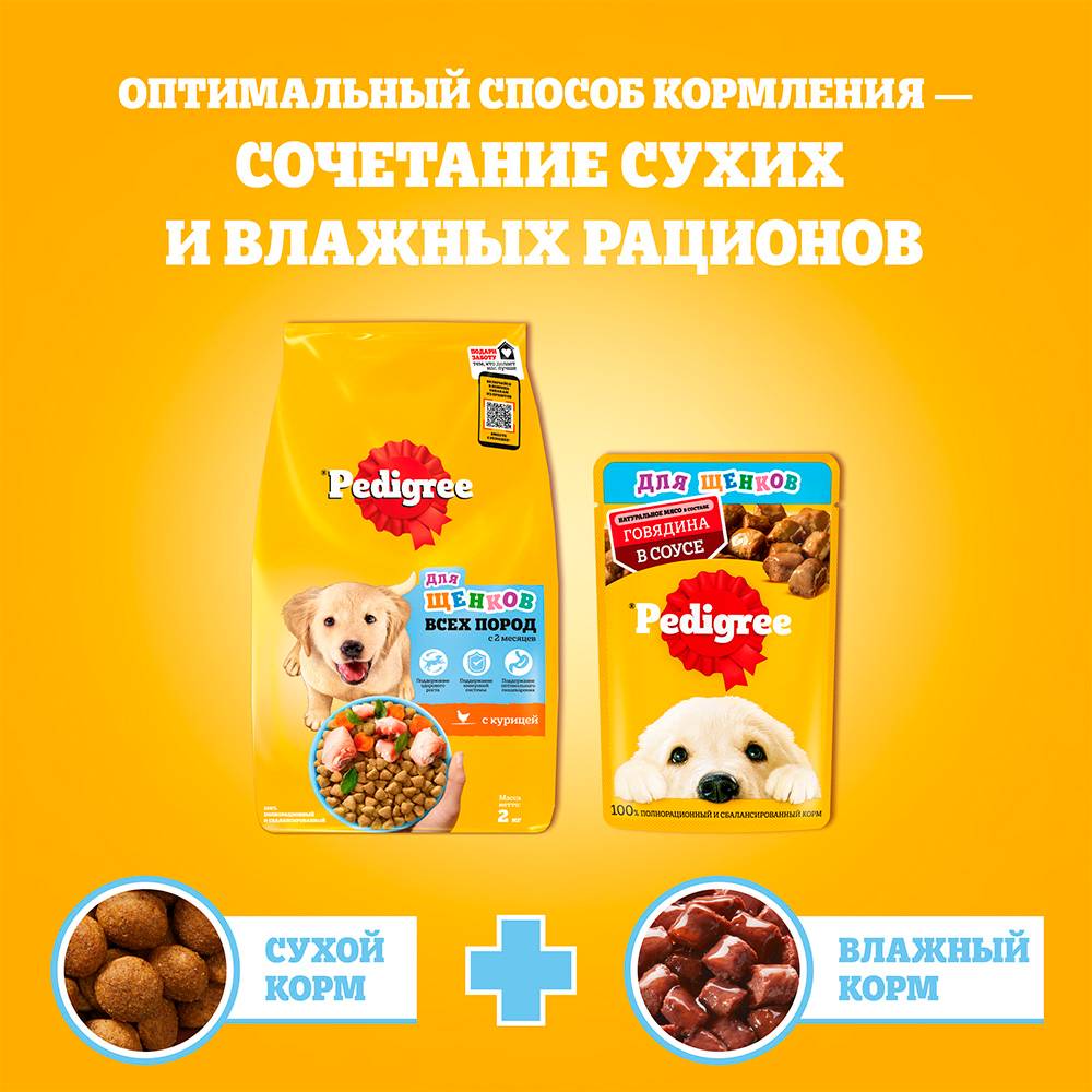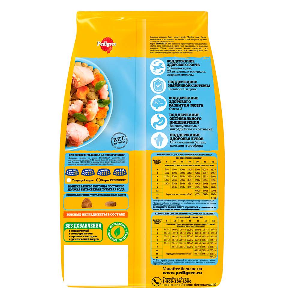 - PEDIGREE® полнорационный корм с курицей способствует здоровому росту и гармоничному развитию вашего малыша.
