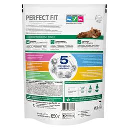 Perfect Fit Sterile — корм для кастрированных и стерилизованных кошек, создан с учетом всех потребностей послеоперационных изменений в организме питомца. Железо и В витамины поддержат необходимую активность, которая после операции заметно угасает. Пребиотики урегулируют микрофлору кишечника и окажут поддержку в пищеварении. Оптимизированный нутриентный профиль будет контролировать поддержание идеального веса.