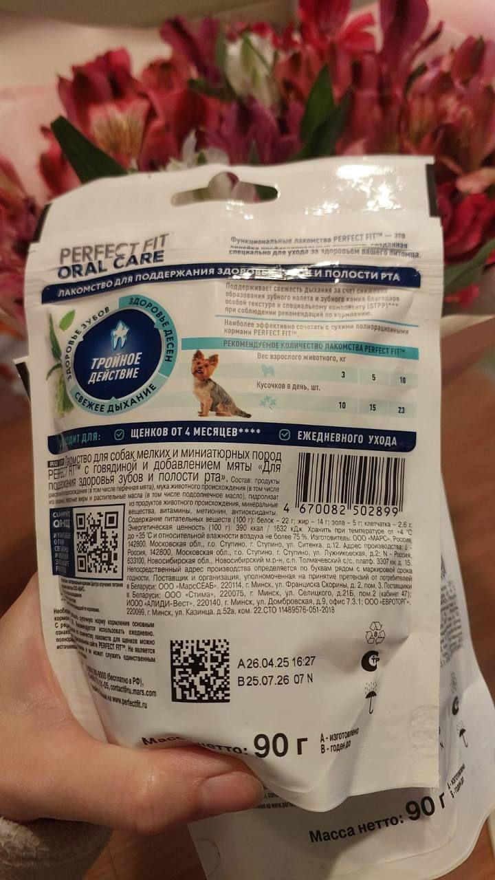 В основе рецептуры функционального лакомства PERFECT FIT™ ORAL CARE лежит особая формула, разработанная совместно с ветеринарными врачами Центра изучения питания домашних животных ООО «Марс». Лакомство производится без добавления искусственных красителей и консервантов.