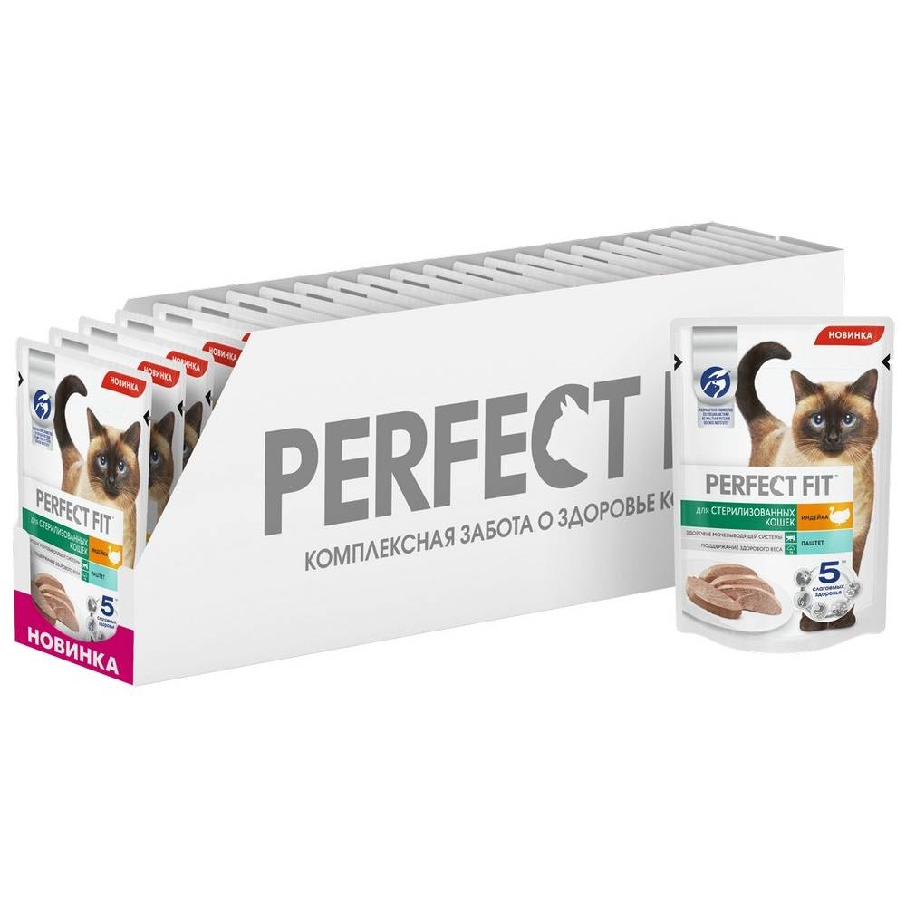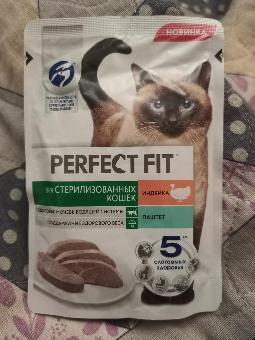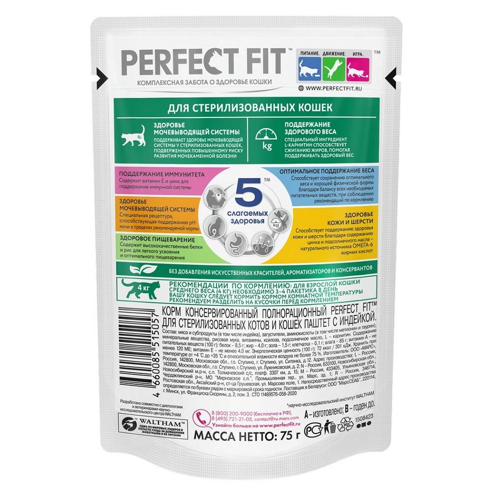 Влажный корм в паучах PERFECT FIT™ паштет с индейкой для стерилизованных кошек разработан по специальной рецептуре для контроля здоровья кошек, прошедших стерилизацию.