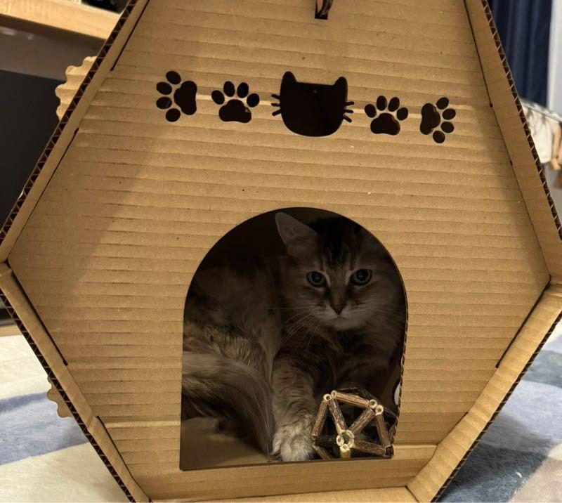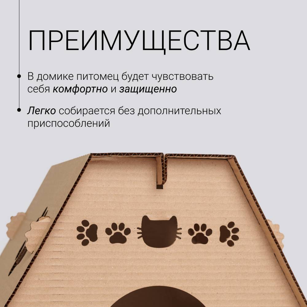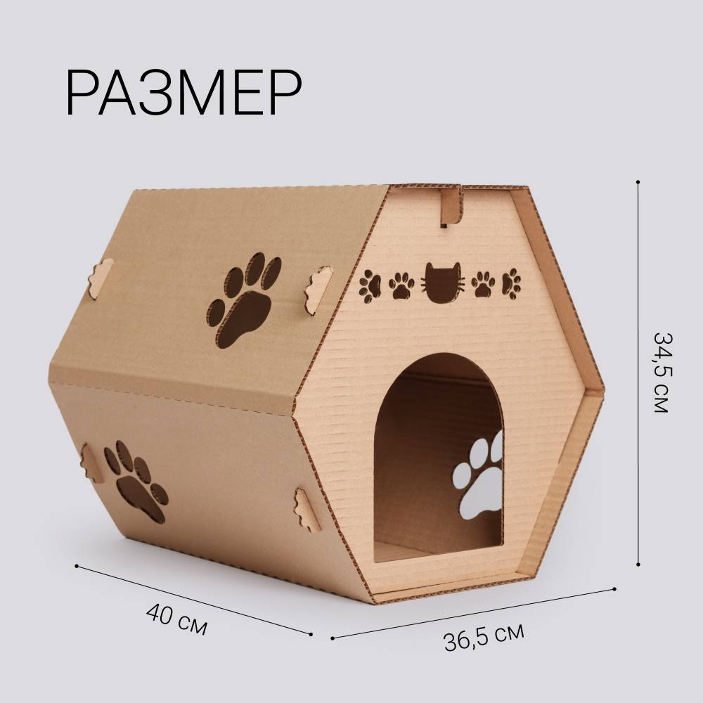 Домик из картона для кошек от бренда Pet Hobby станет уютным и экологичным местом отдыха для вашего усатого питомца.