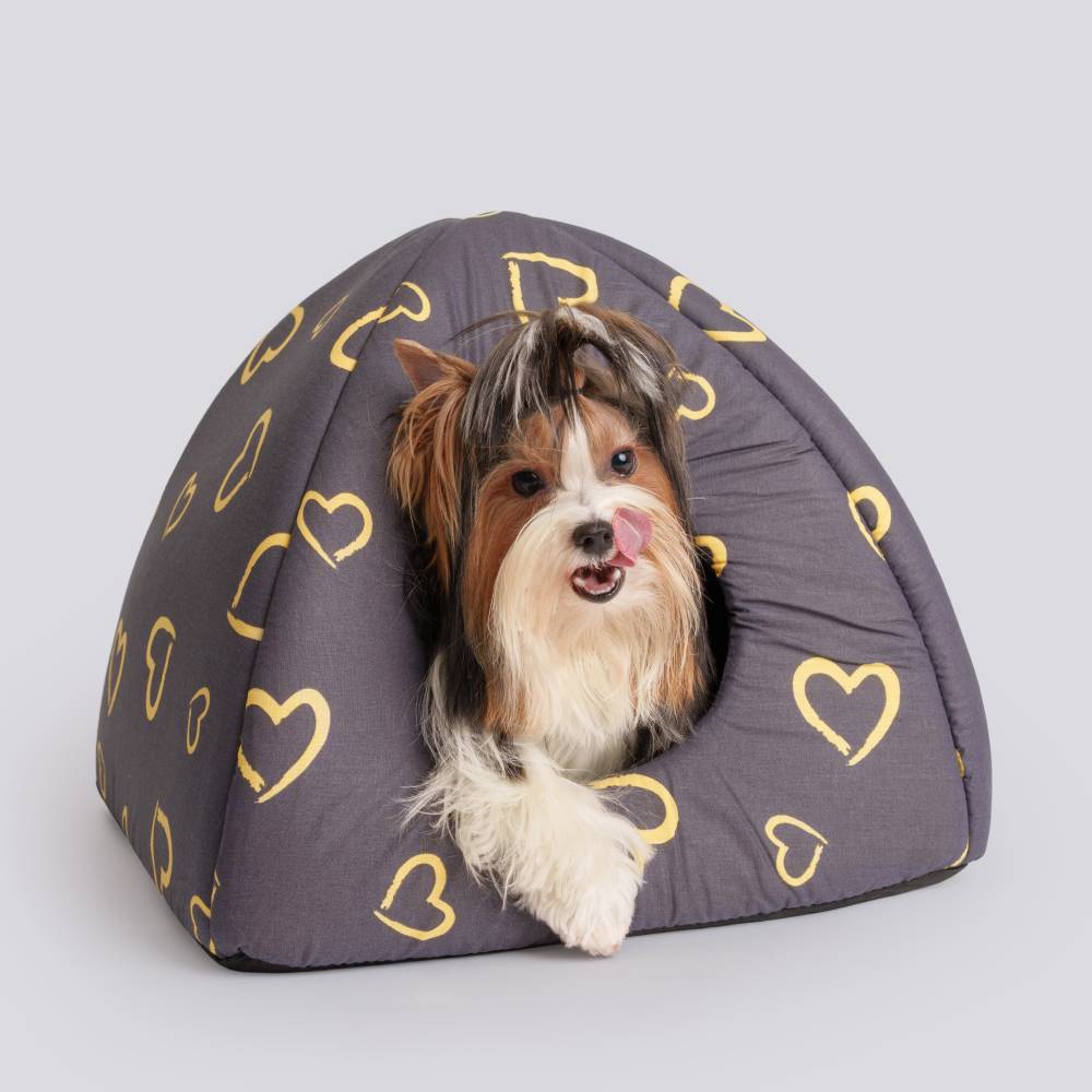 Pet hobby Дом-вигвам для кошек и собак мелких пород Сердечки, 40х40х39 см, черный