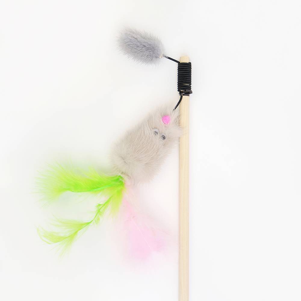Дразнилка для кошек Мышка из натуральной норки с перьевым хвостом от бренда Pet Hobby подходит как для взрослых кошек, так и котят.