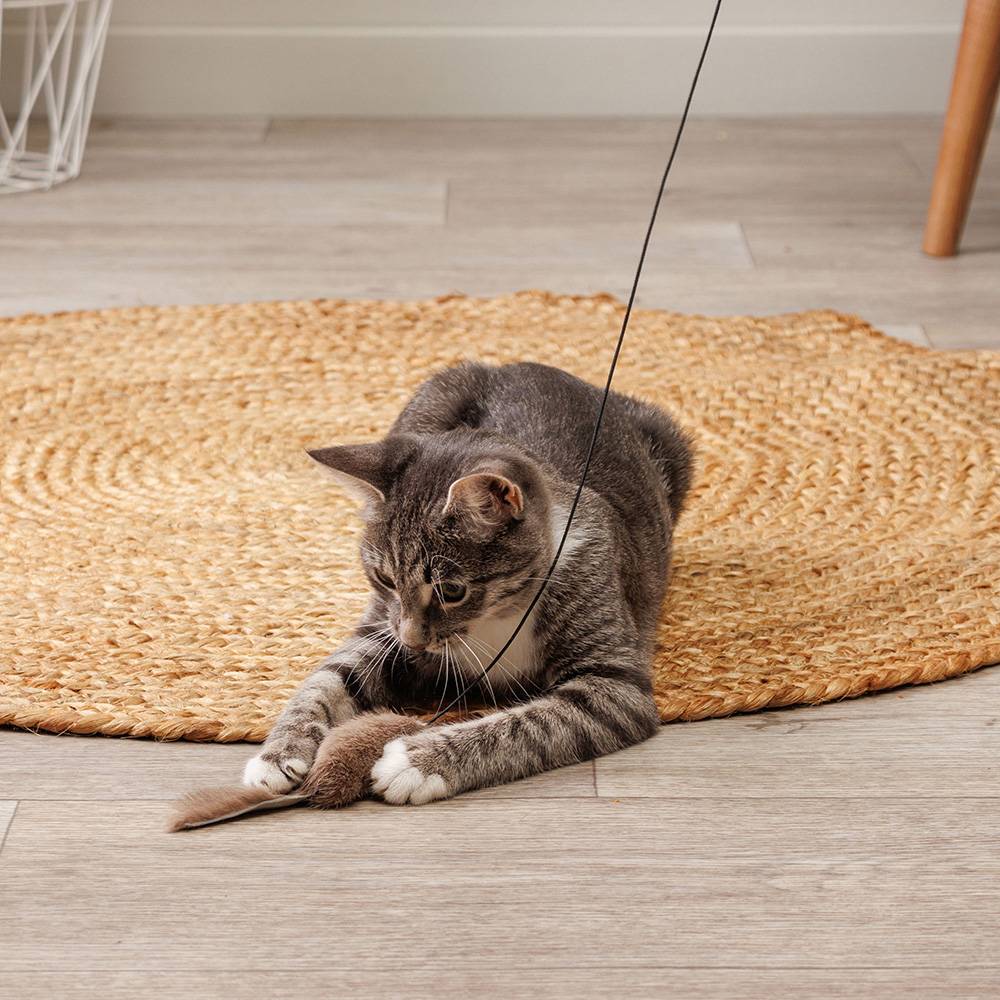 - Мышка из натурального меха привлечет внимание питомца.