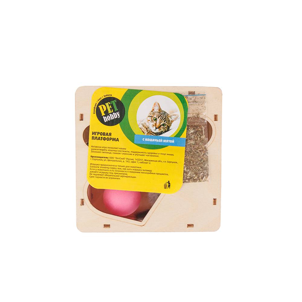 Игровая платформа для кошек Квадрат с шариком и игрушкой развлечет вашего питомца.