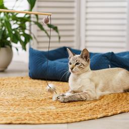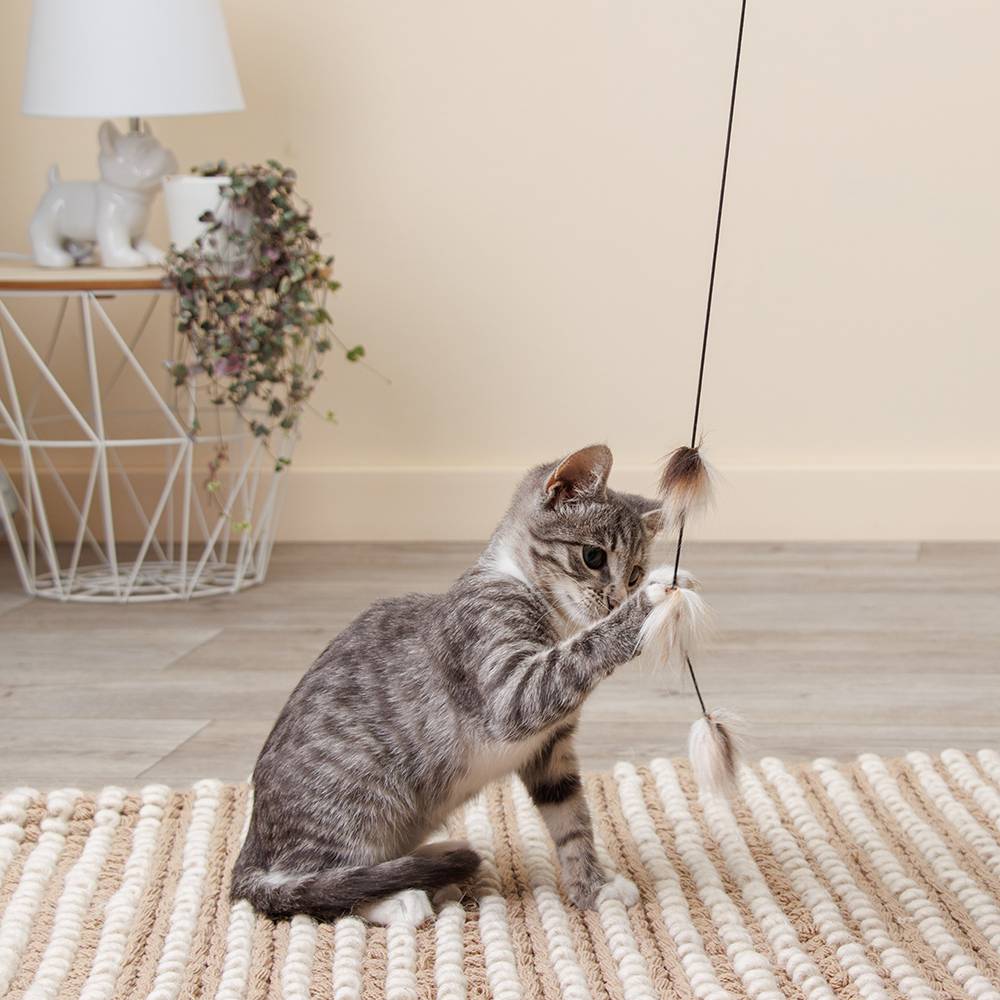 - Активная игра с усатым поддерживает здоровье и тонус мышц, улучшает его настроение, снимает агрессию и нервозность.