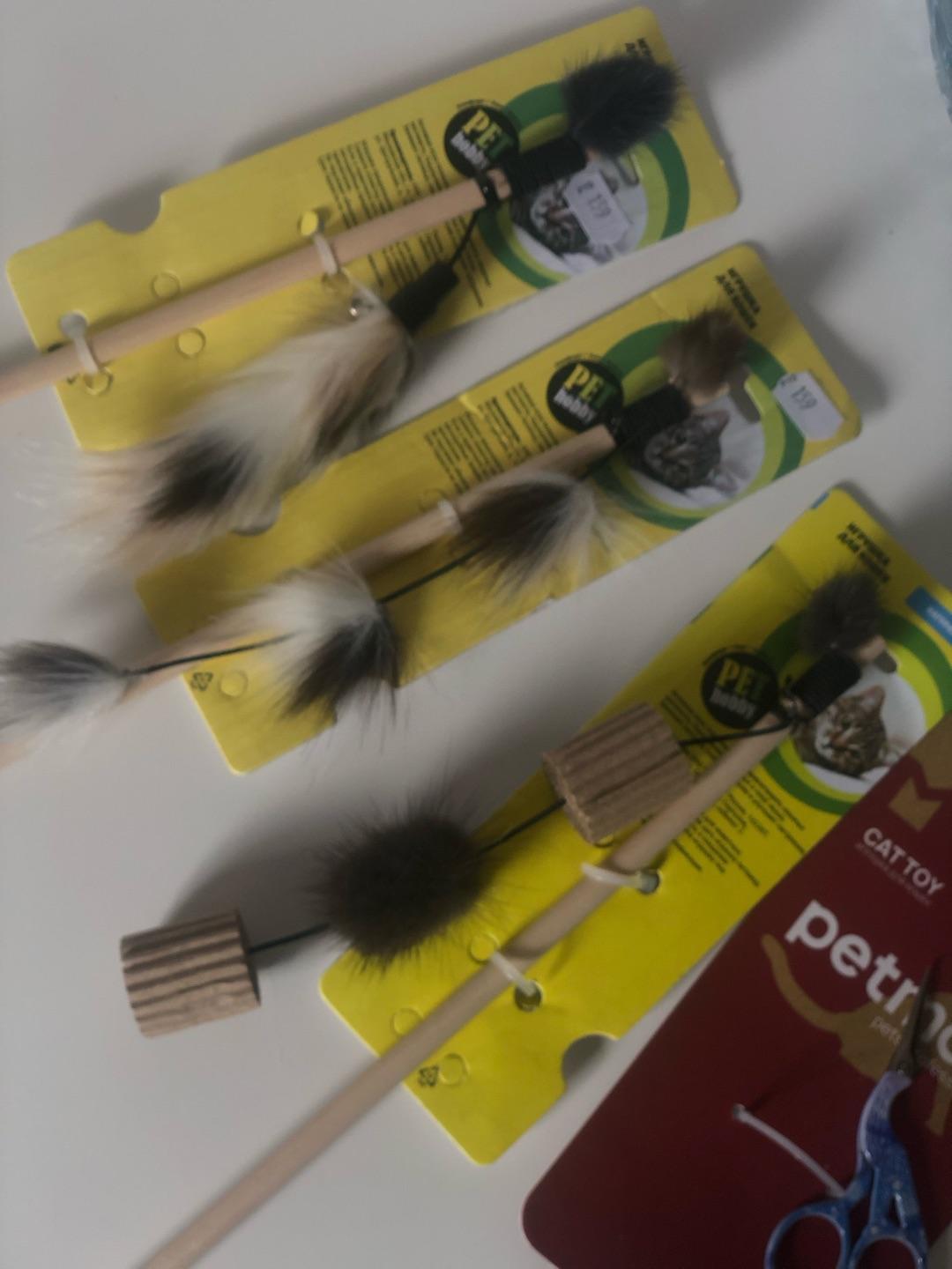 - У питомца не должно быть возможности проглотить изделие целиком или какие-либо его части. Если кошка склонна к поеданию несъедобных предметов, давайте игрушку под присмотром.