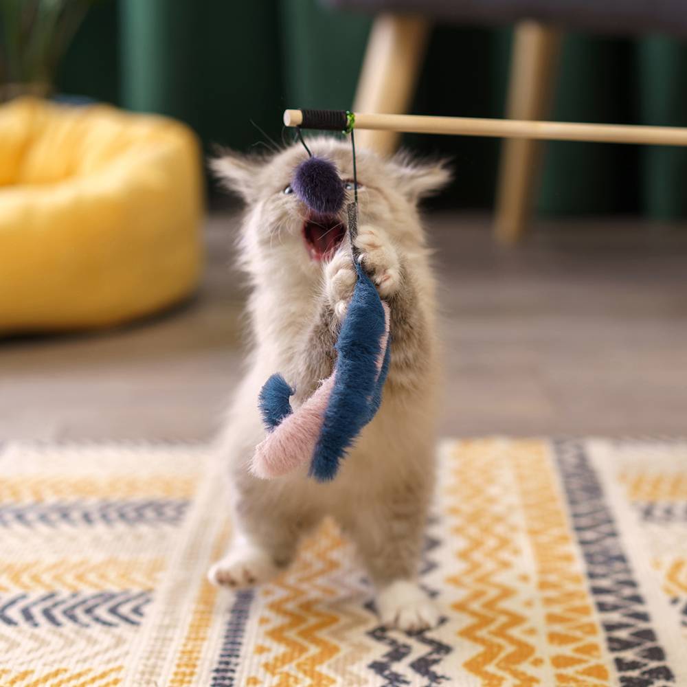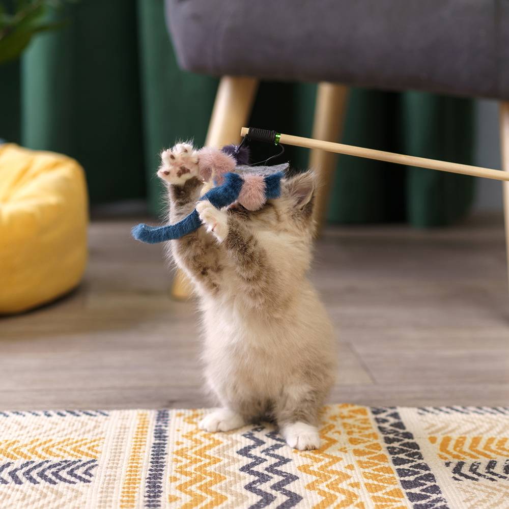 - Активная игра с усатым поддерживает здоровье и тонус мышц, улучшает его настроение, снимает агрессию и нервозность.