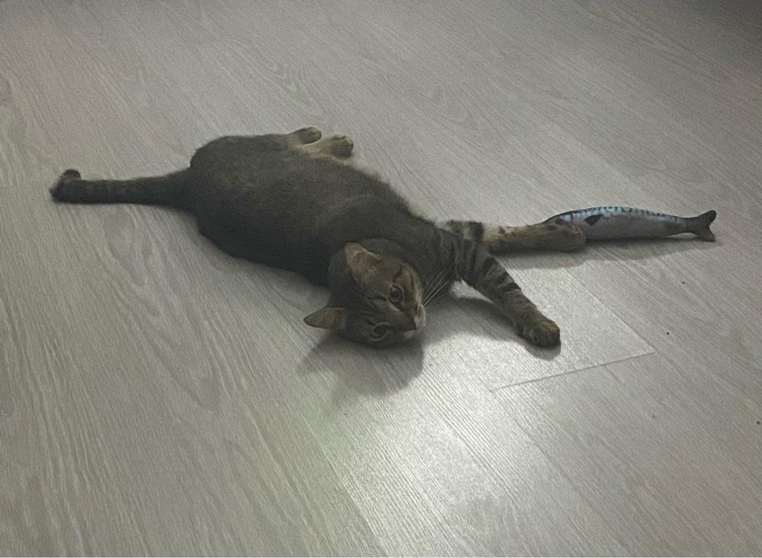 Рыба огонь. Не думала, что так понравится котикам. Взяла для начала одну на пробу, потому что раньше такие игрушки не очень заходили котикам. То ли пахли слабо, то ли интерес быстро пропадал. Но эта рыба… Всем рыбам рыба! По итогу все четверым с нее снесло крышу, обслюнявили ее на сквозь и подрались за главенство на рыбой.Комментарий