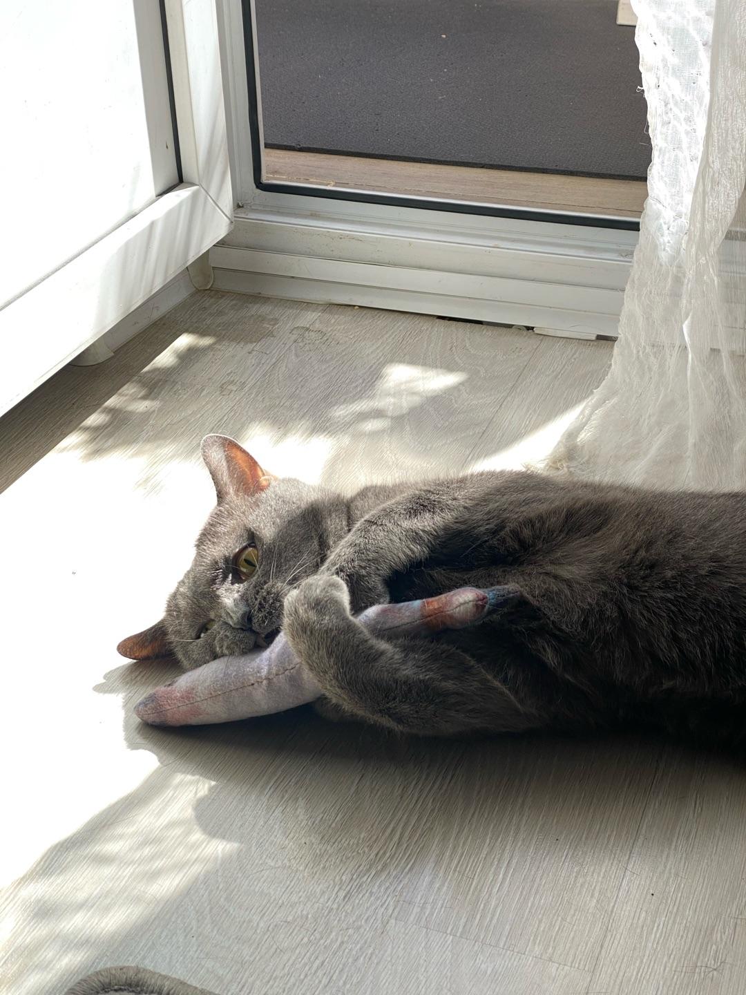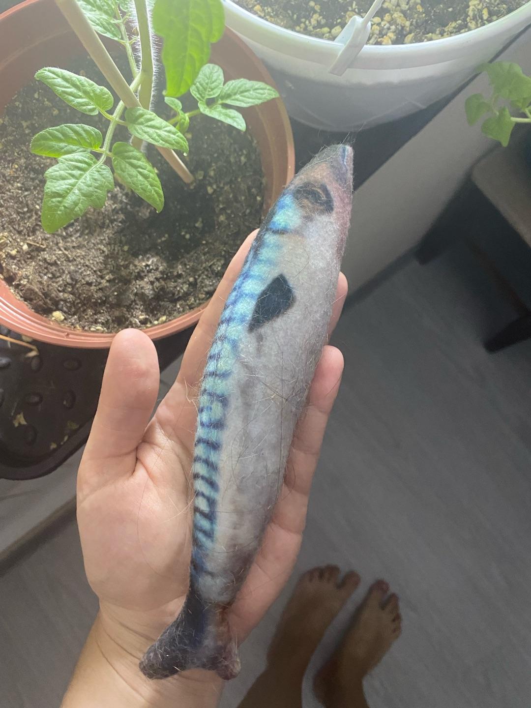 Вроде все хорошо, котик несколько дней играет, хватает 4 лапами и бесится. Иногда подкидывает и бежит ее ловить. Чувствуется запах какой-то травки, если понюхать саму рыбку. Материал мягкий с небольшим ворсом, собирает с пола всю пыль и волосы)) но это мелочи: лёгким движением руки это убирается, чтобы котик не съел во время игры.Комментарий