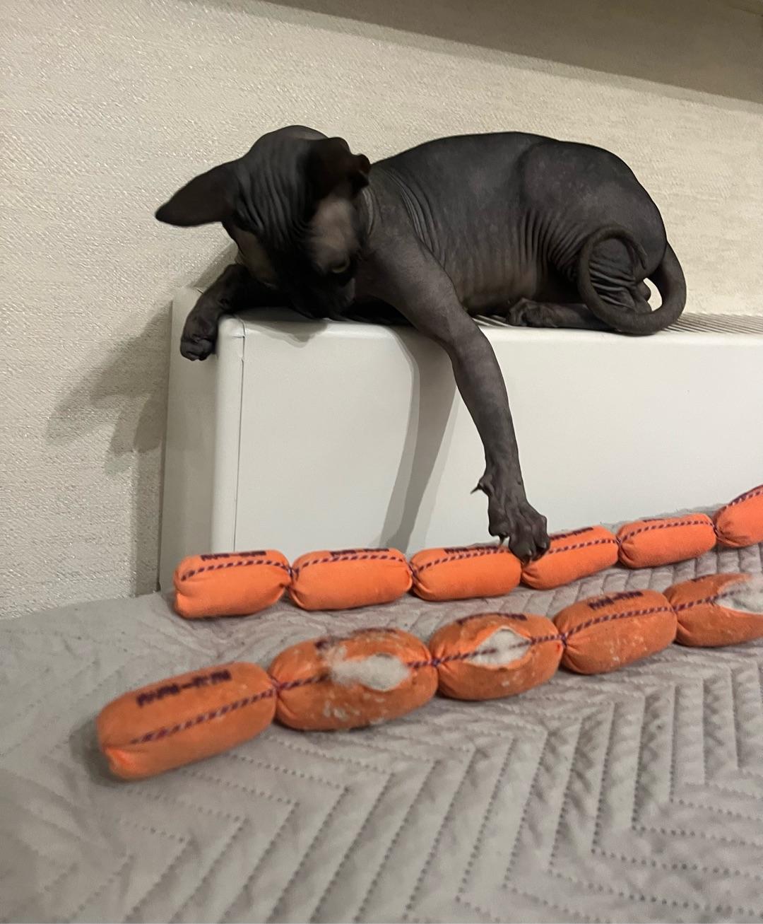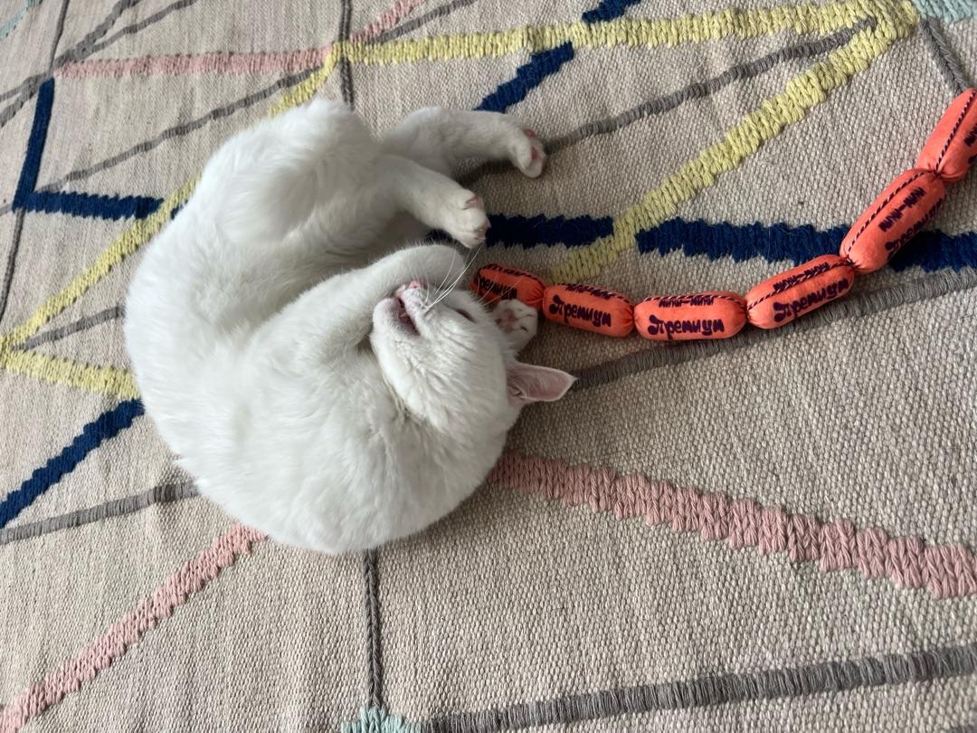- Внутри кошачья мята и валериана, что успокаивает питомца и снимает стресс.