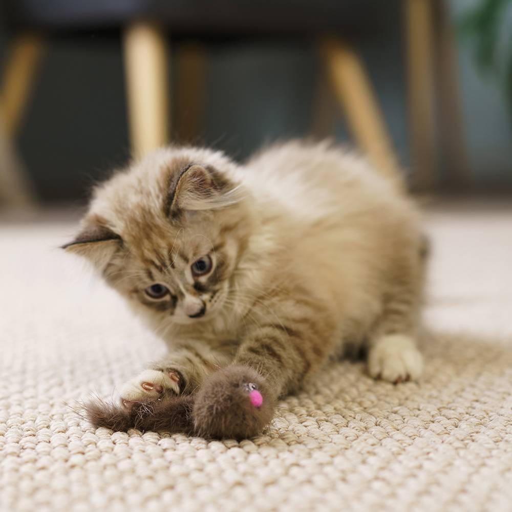 - Натуральный мех имитирует настоящую добычу, активируя кошачьи охотничьи инстинкты.