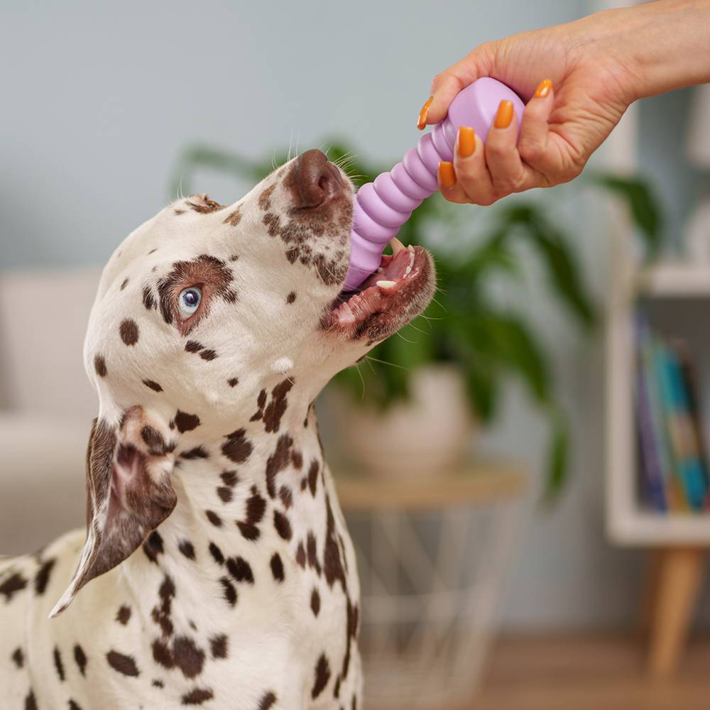 - Массирует десны, укрепляет челюстные мышцы собаки, удаляет зубной налет.