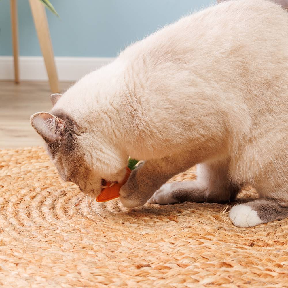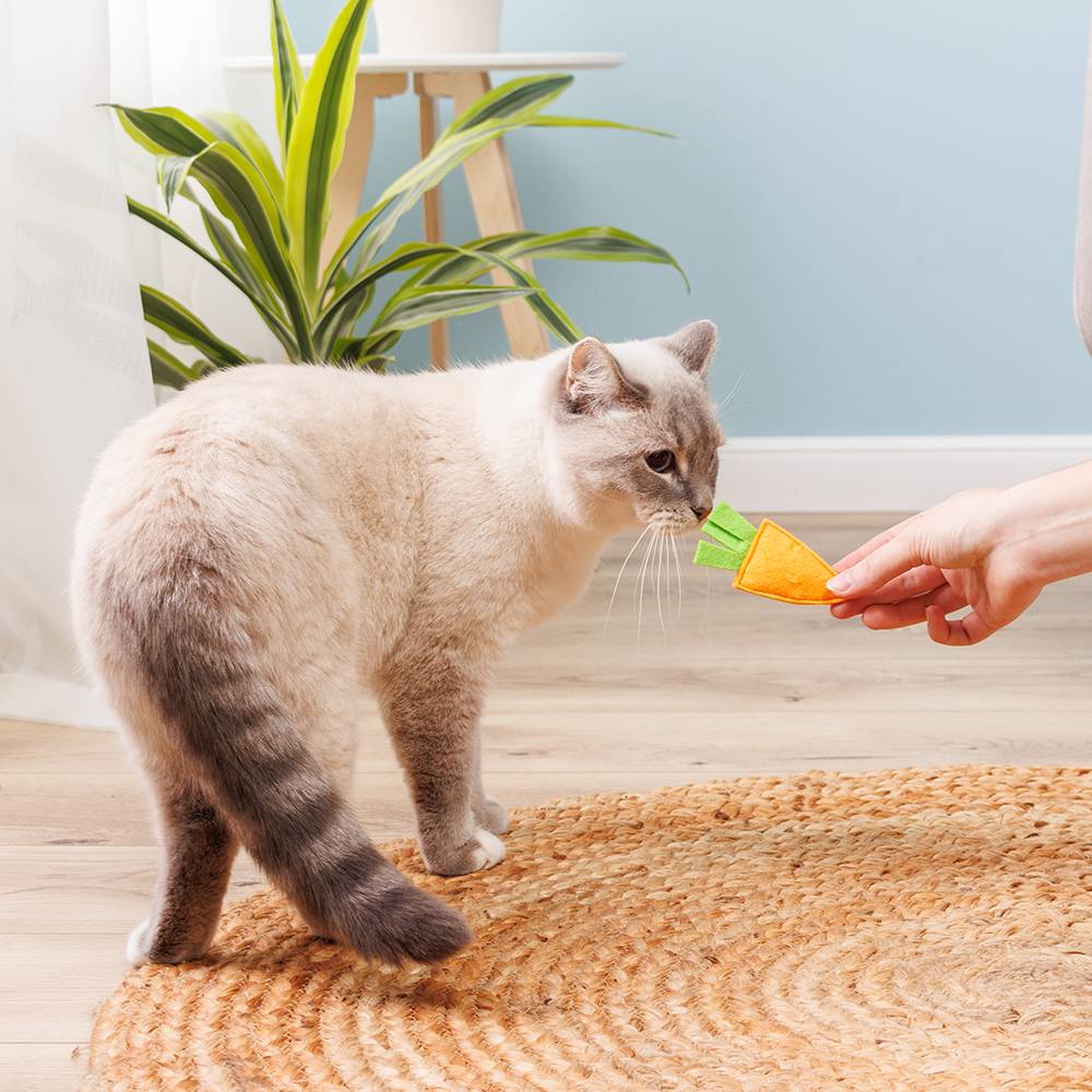 - Внутри морковки есть кошачья мята, которая снимает стресс и улучшает настроение питомца.