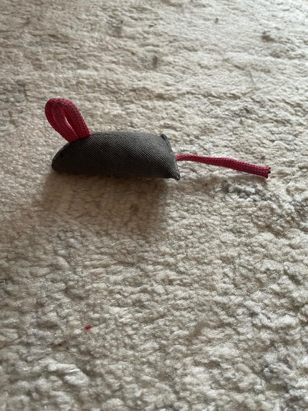 Коту очень понравилась мышка, он её разгрыз и вся мята высыпалась, но все равно играется.)