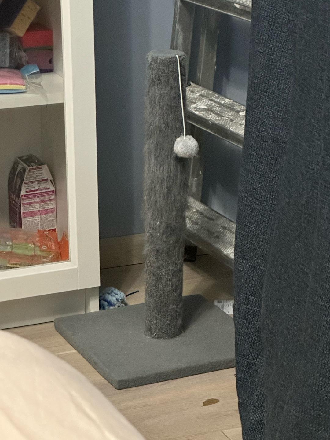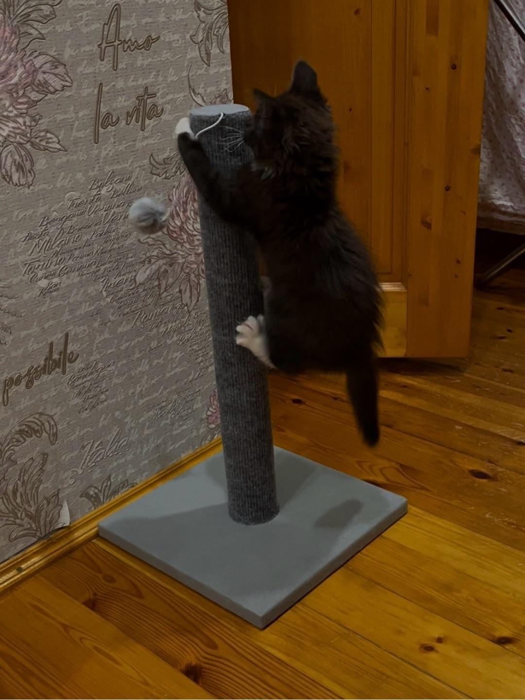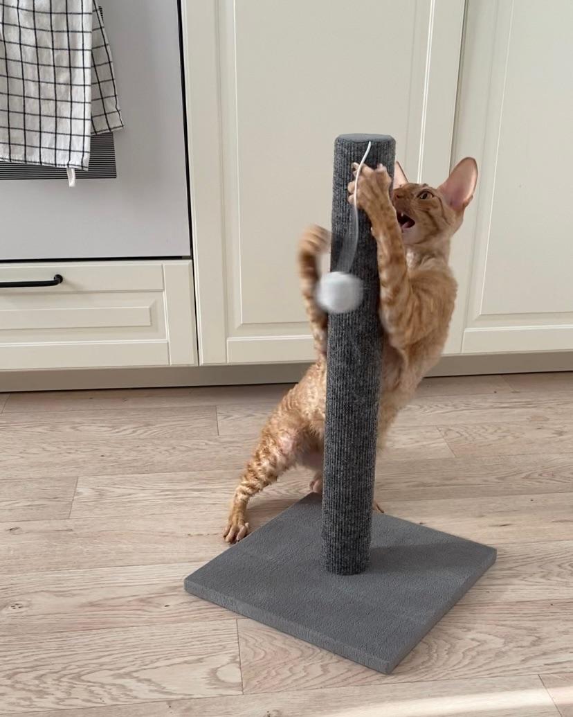 - На верхушке у когтеточки закрепляется на шнурке мягкий шарик.