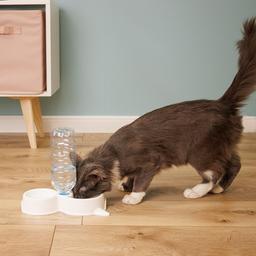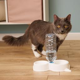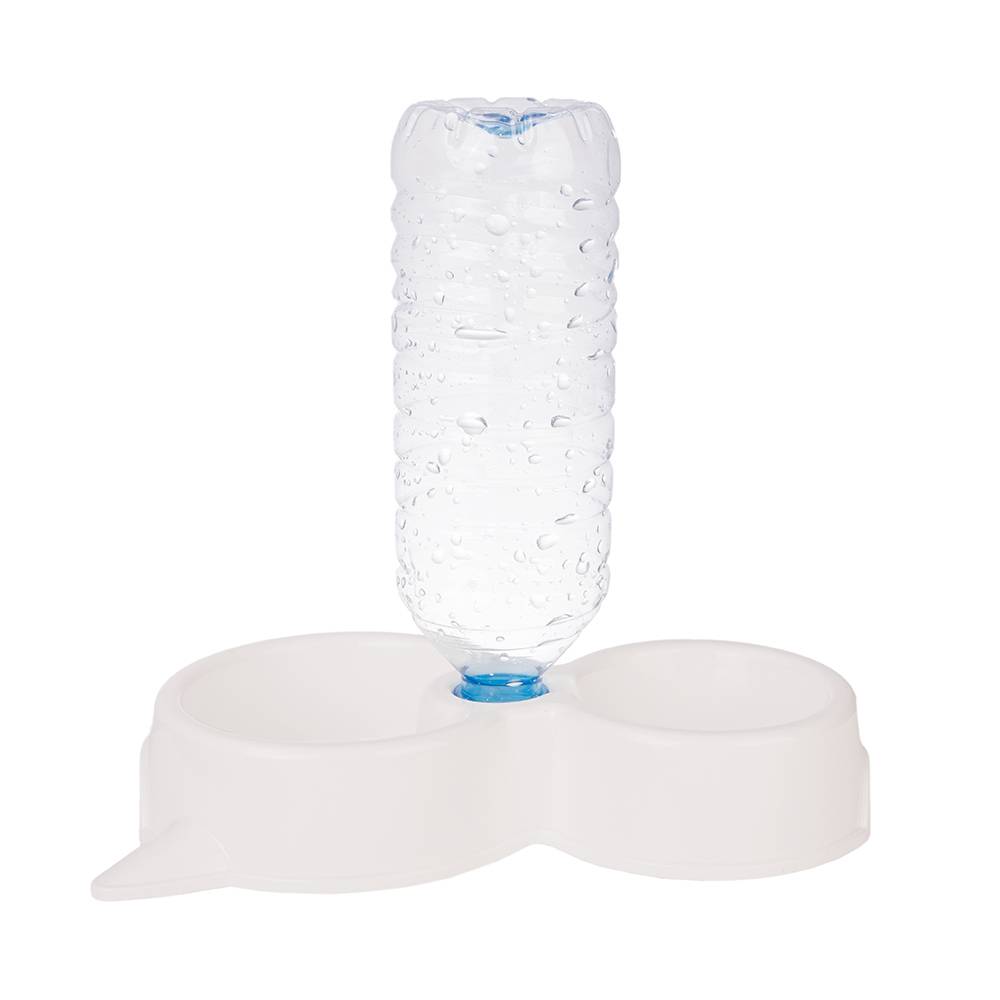 - Специальное отверстие в центральной части миски позволяет присоединять бутылку с водой и использовать ее в качестве поилки.