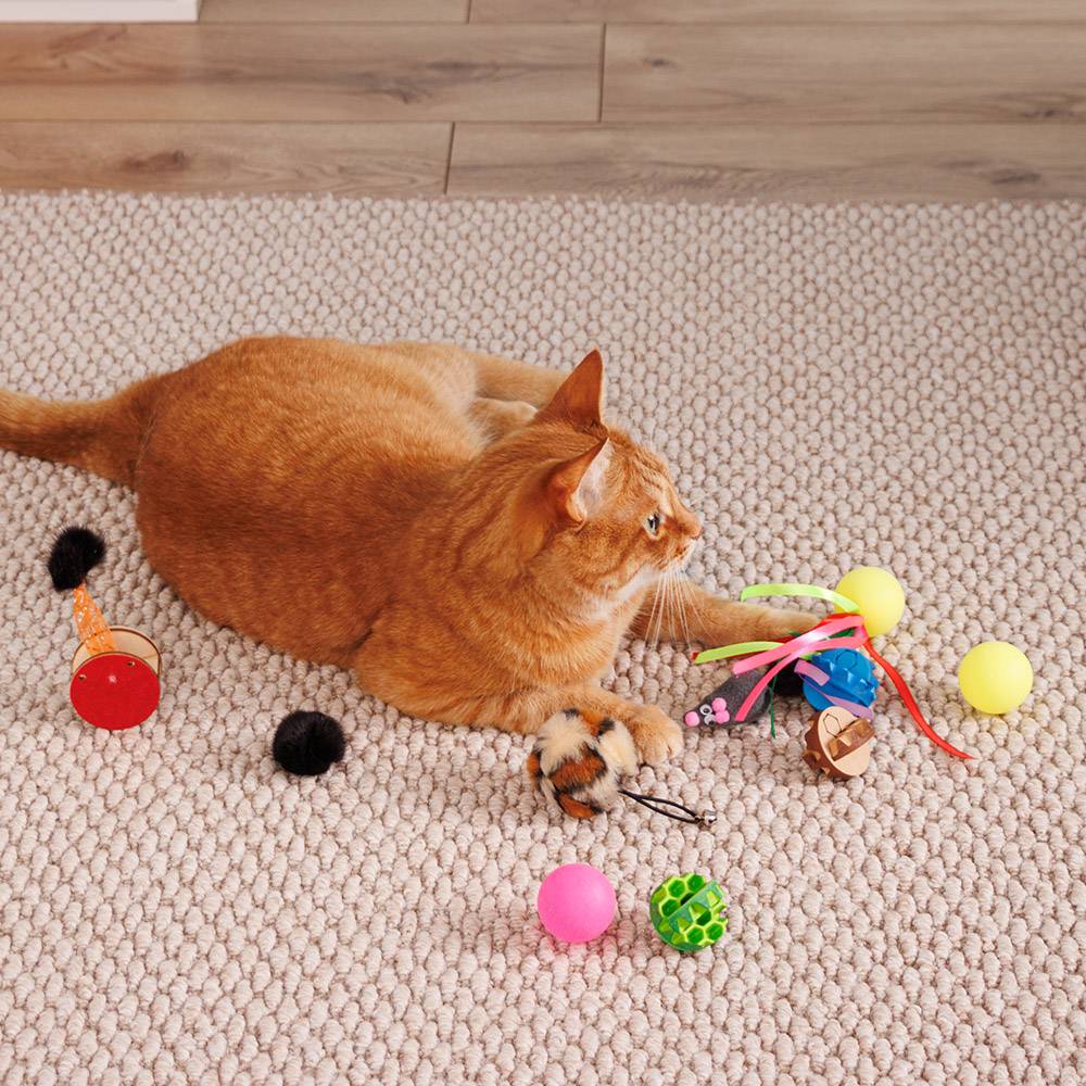 Набор игрушек для кошек Годовой запас развлечет питомца и позволит ему удовлетворить свои охотничьи инстинкты.