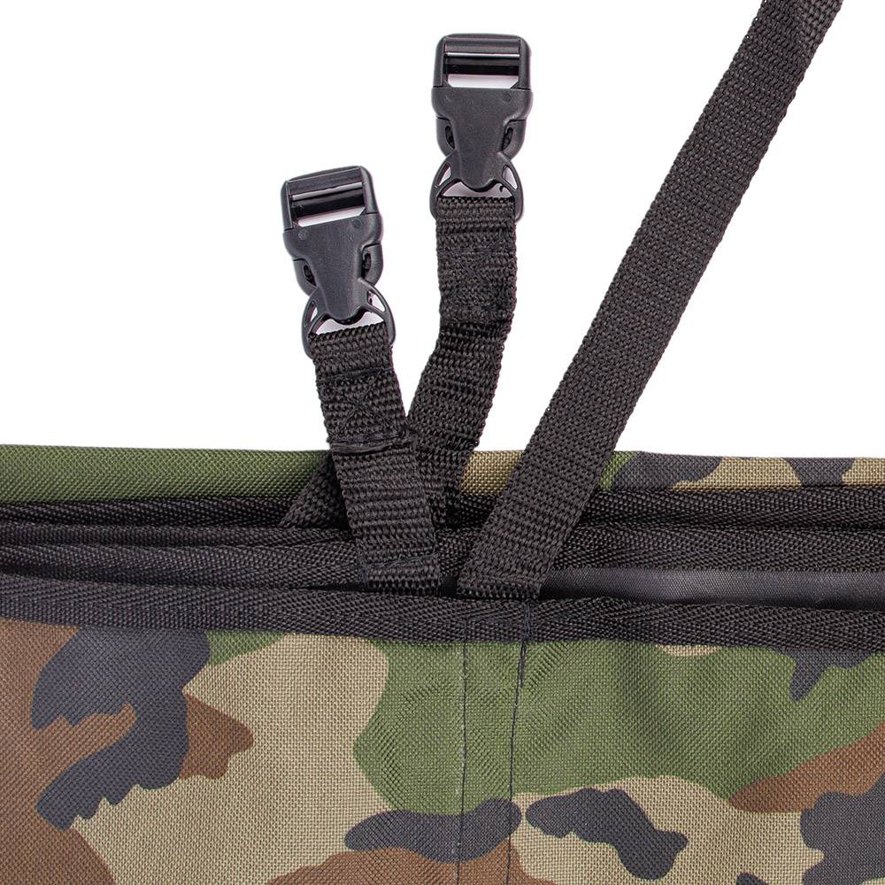 - Для установки гамака достаточно просто закрепить ремни на подлокотниках передних и задних сидений и отрегулировать их по длине.