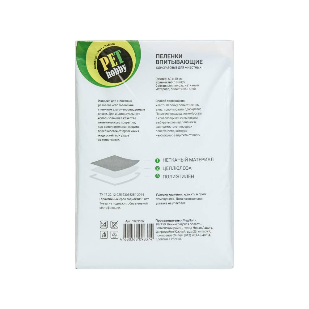 Pet hobby Пеленки впитывающие 60х40 см (10 шт.) для собак и кошек, белые