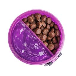 - Есть 2 отделения: одно для воды с откручивающейся крышкой, второе — для сухого корма.