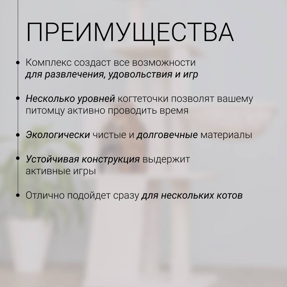 - Комплекс, который создаст вашей кошке все возможности для развлечения, отдыха, удовольствия и игр.