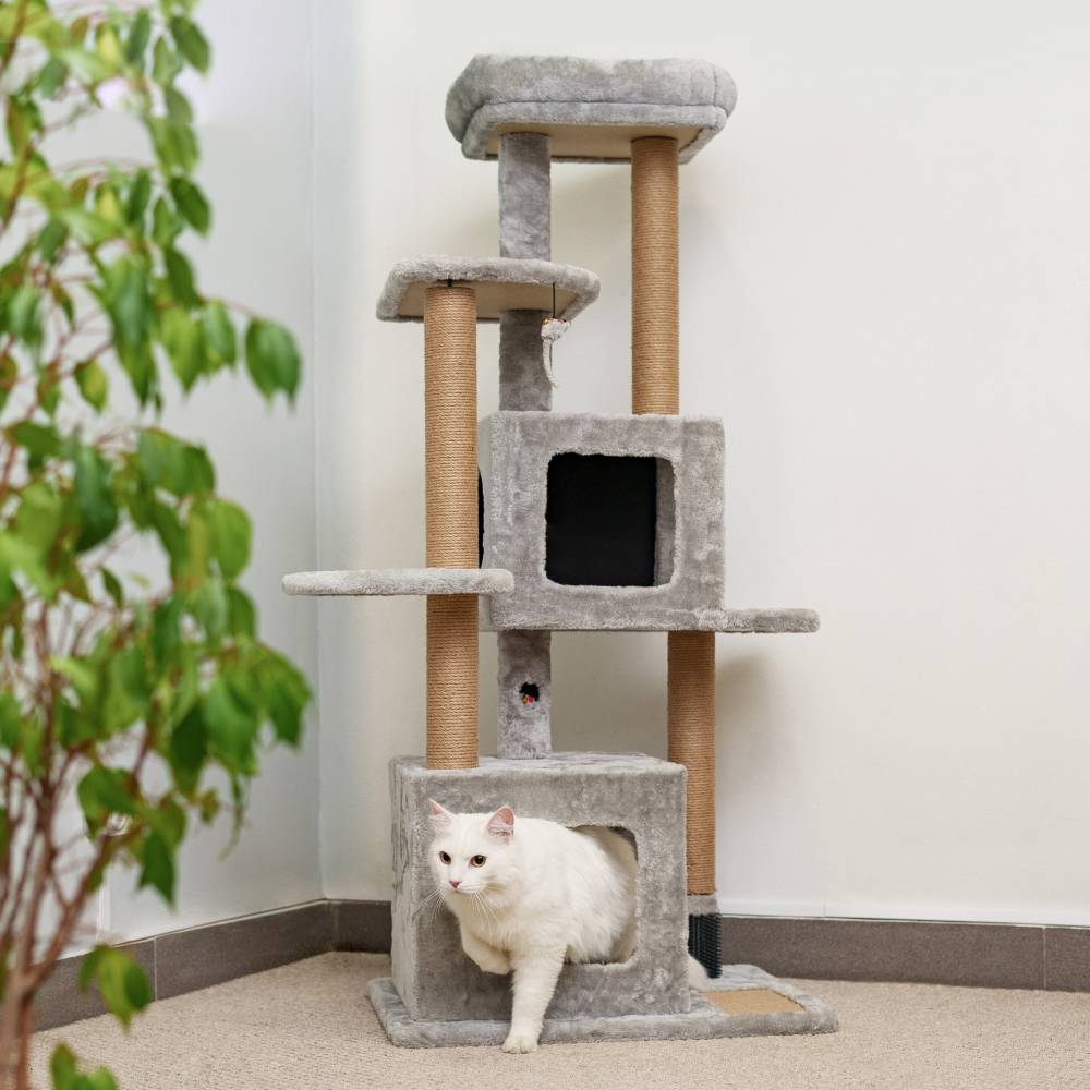 - Несколько уровней когтеточки позволят вашему питомцу активно проводить время, совершая прыжки.
