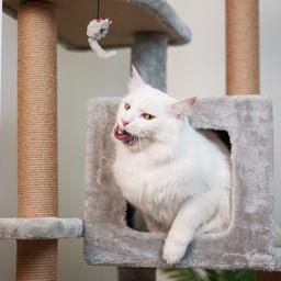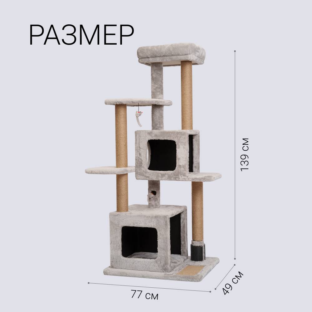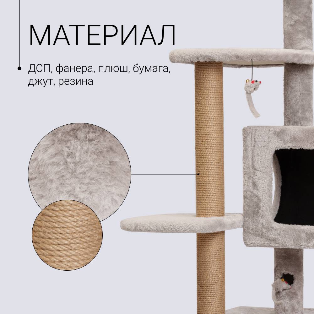 - Несколько уровней когтеточки позволят вашему питомцу активно проводить время, совершая прыжки.