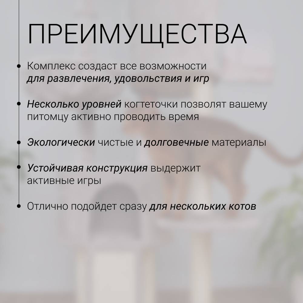 - Комплекс, который создаст вашей кошке все возможности для развлечения, отдыха, удовольствия и игр.