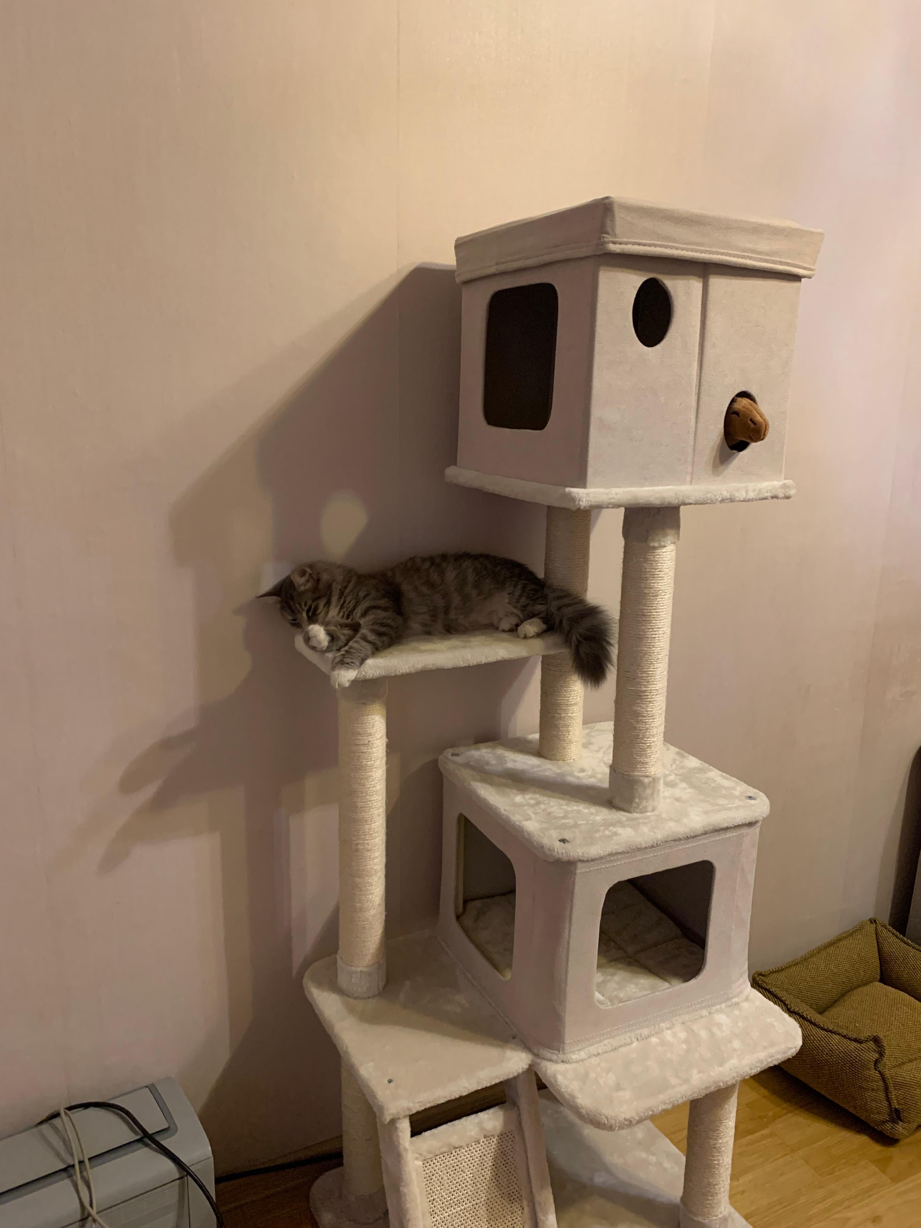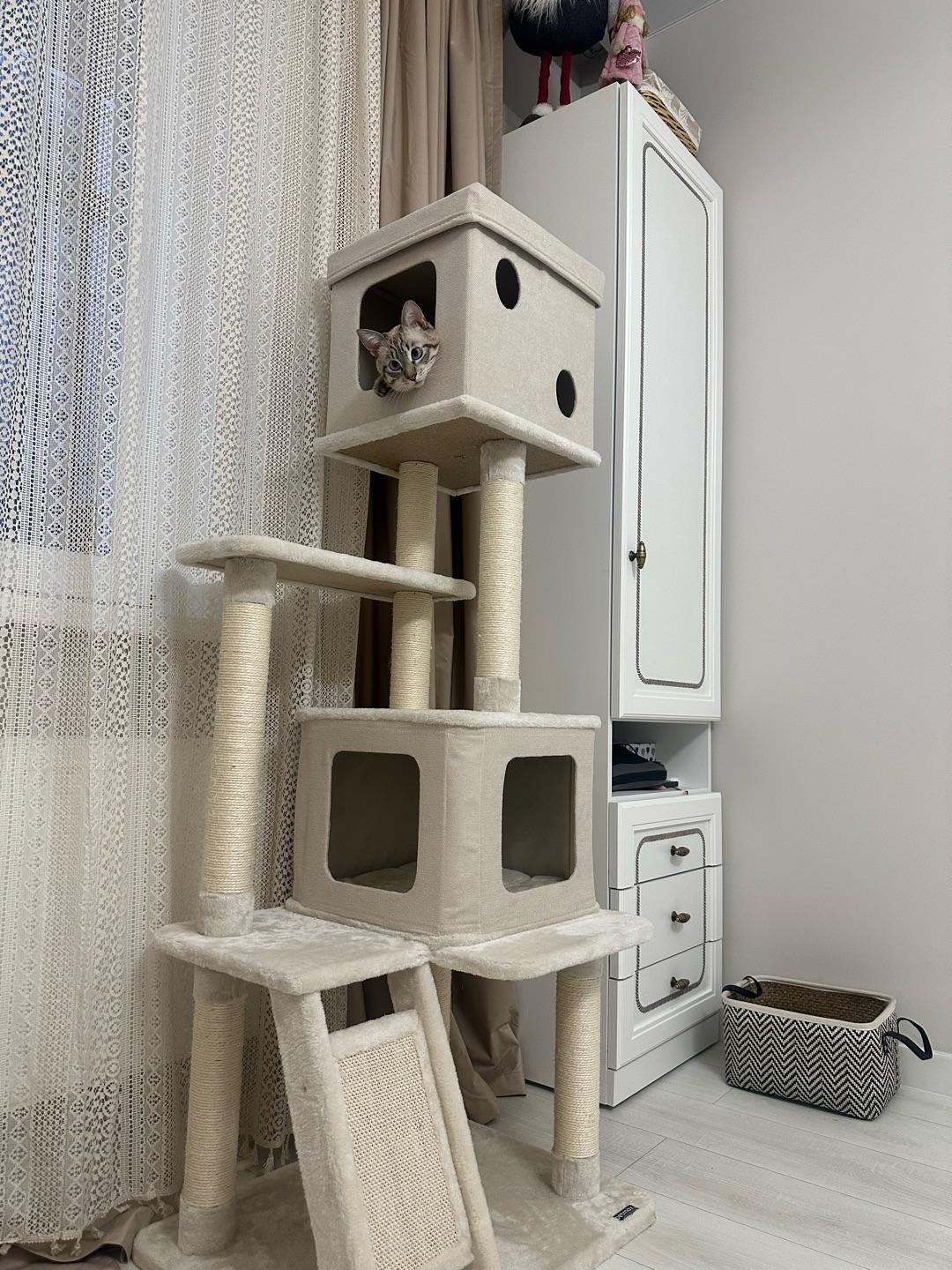 Дом-когтеточка 62х50х156 см - это многоуровневый игровой комплекс, который предоставит вашему питомцу отличное место для отдыха и сна. Идеален для дома с двумя и более питомцами.