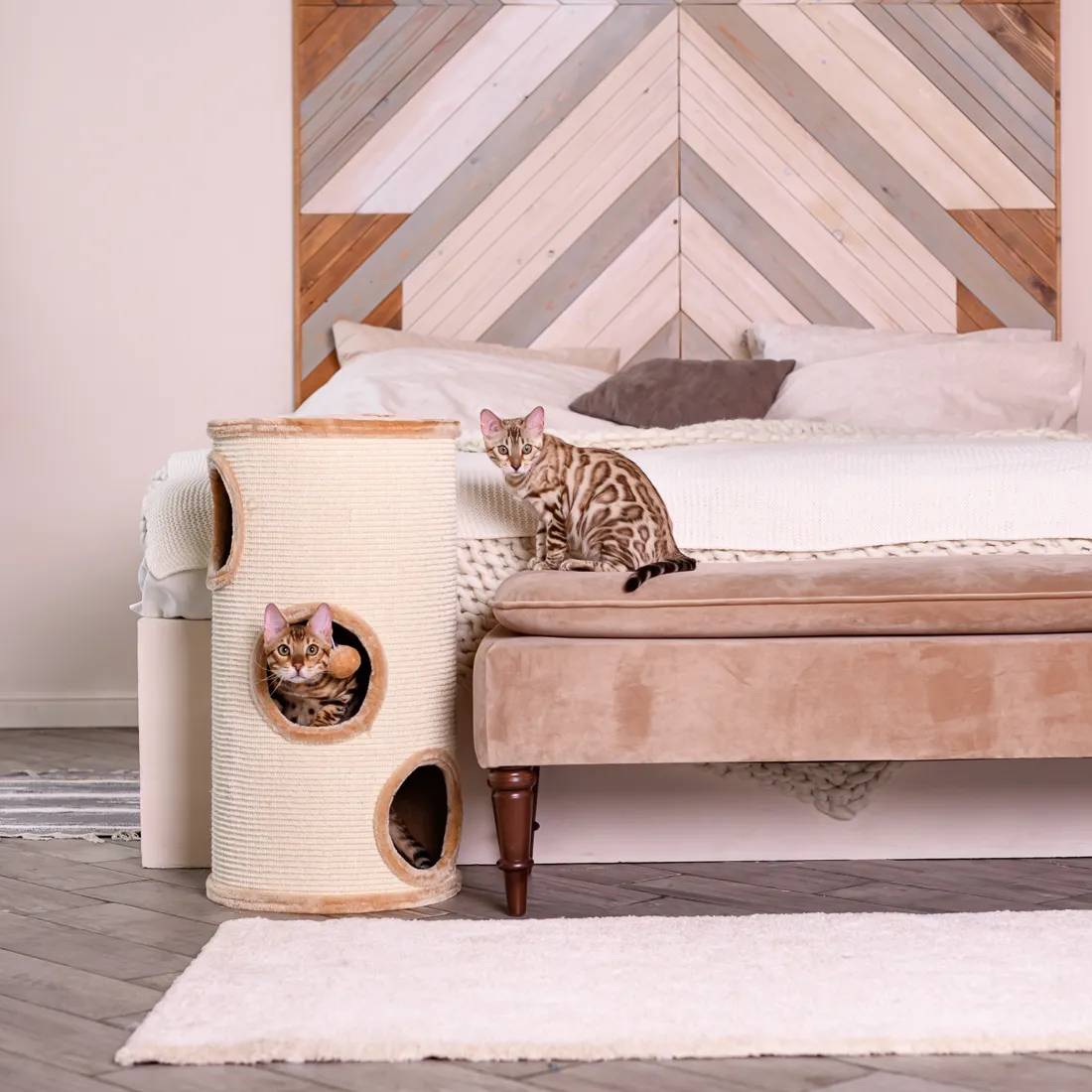 - Внешняя обивка дома служит когтеточкой, она изготовлена из сизалевого волокна - прочного материала, который идеально подходит для стачивания когтей.