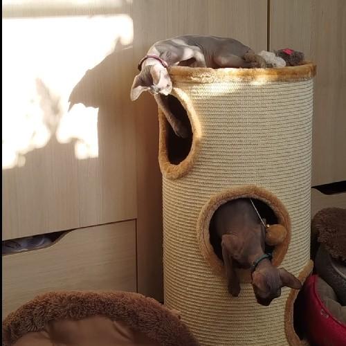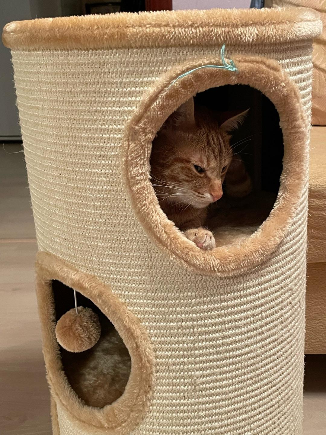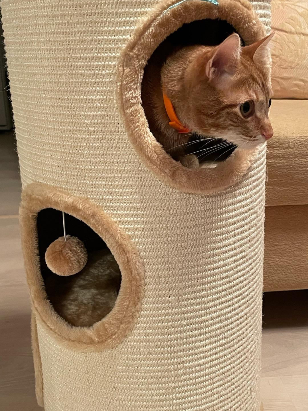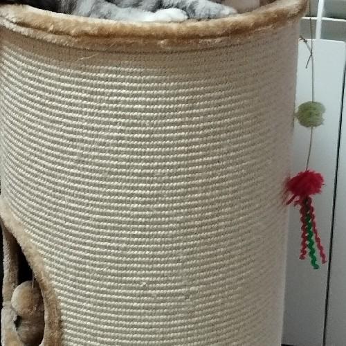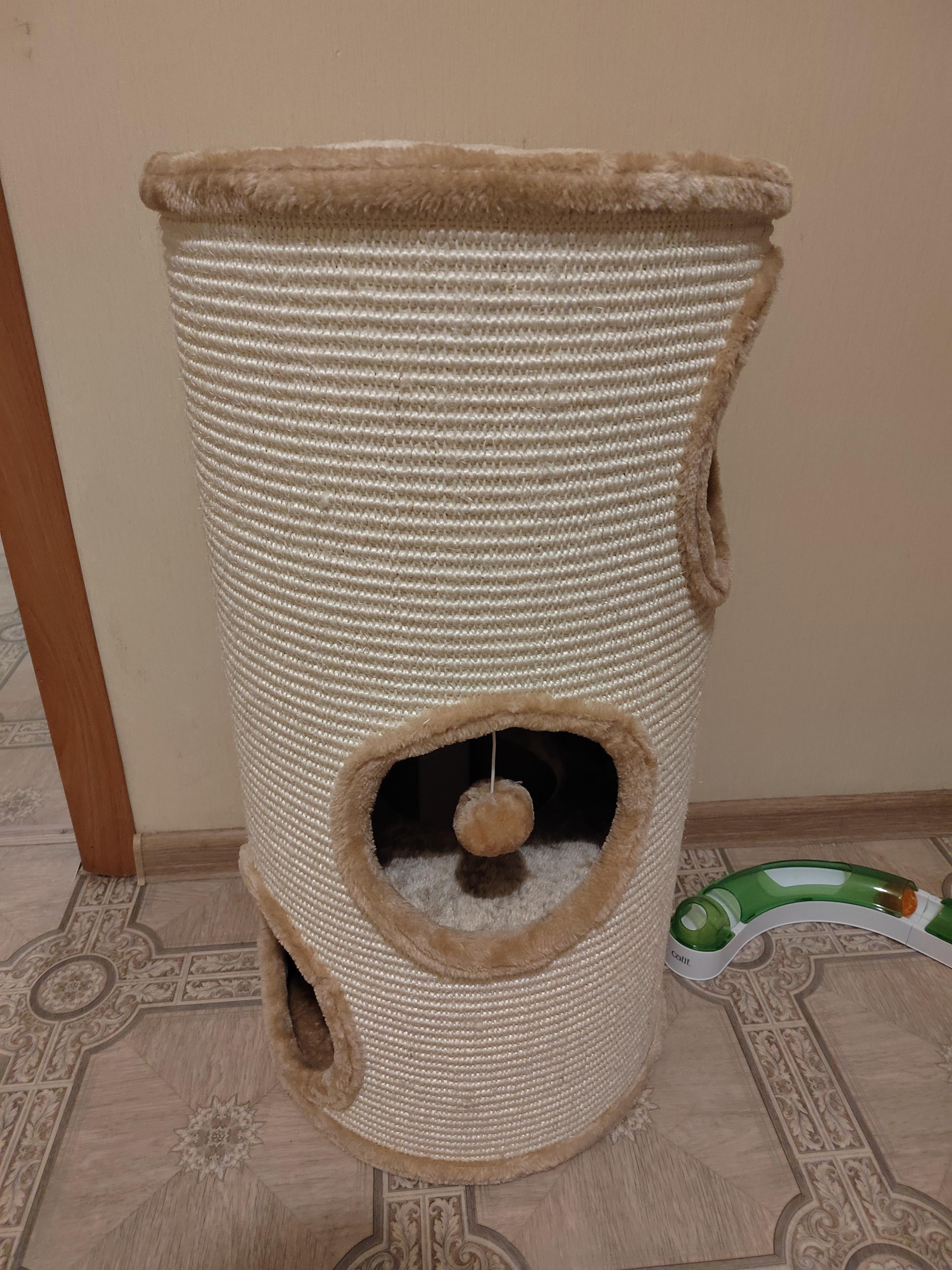 - Внешняя обивка дома служит когтеточкой, она изготовлена из сизалевого волокна - прочного материала, который идеально подходит для стачивания когтей.