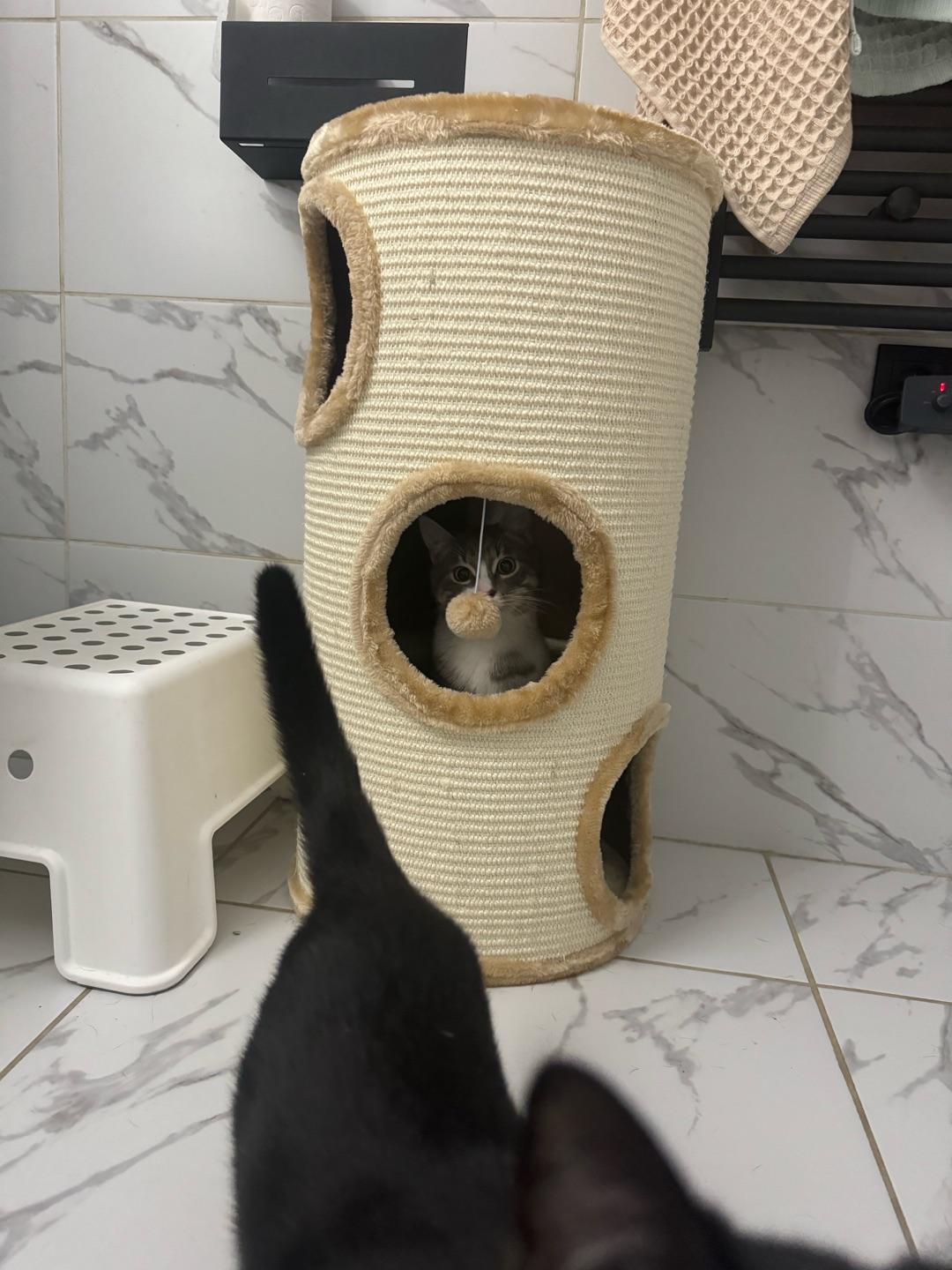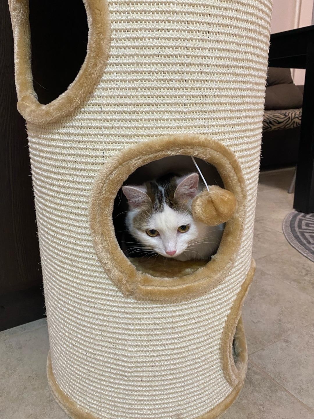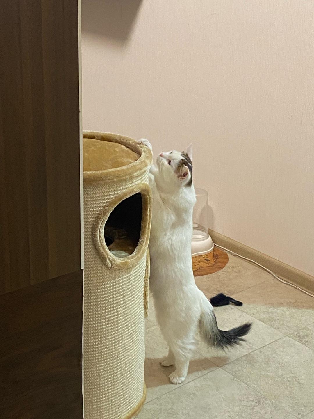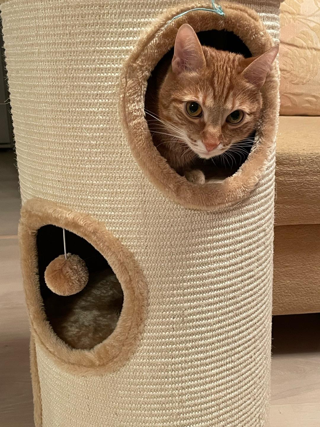 - Внешняя обивка дома служит когтеточкой, она изготовлена из сизалевого волокна - прочного материала, который идеально подходит для стачивания когтей.